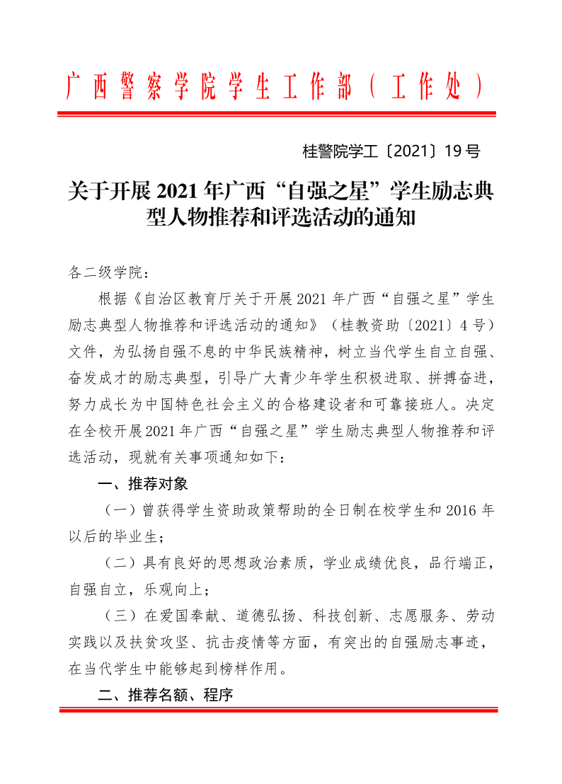 关于开展2021年广西“自强之星”学生励志典型人物推荐和评选活动的通知