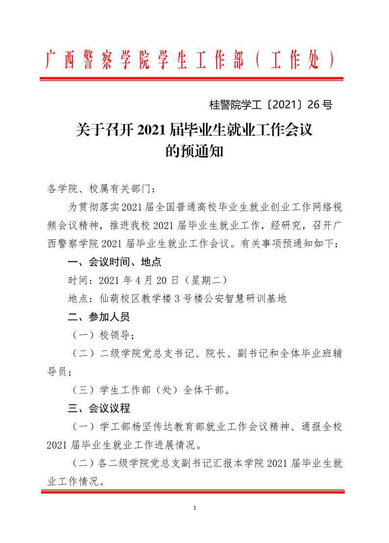 关于召开2021届毕业生就业工作会议的预通知