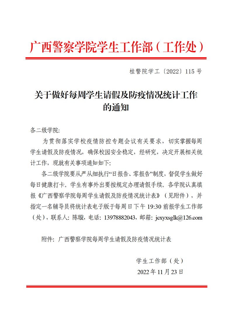 关于做好每周学生请假及防疫情况统计工作的通知 来源: 发布时间:2022-11-23 11:10:05 浏览次数: 次 【字体:小 大】 附件:beat365唯一官方网站每周学生请假及防疫情况统计表.pdf 分享到: 【打印正文】