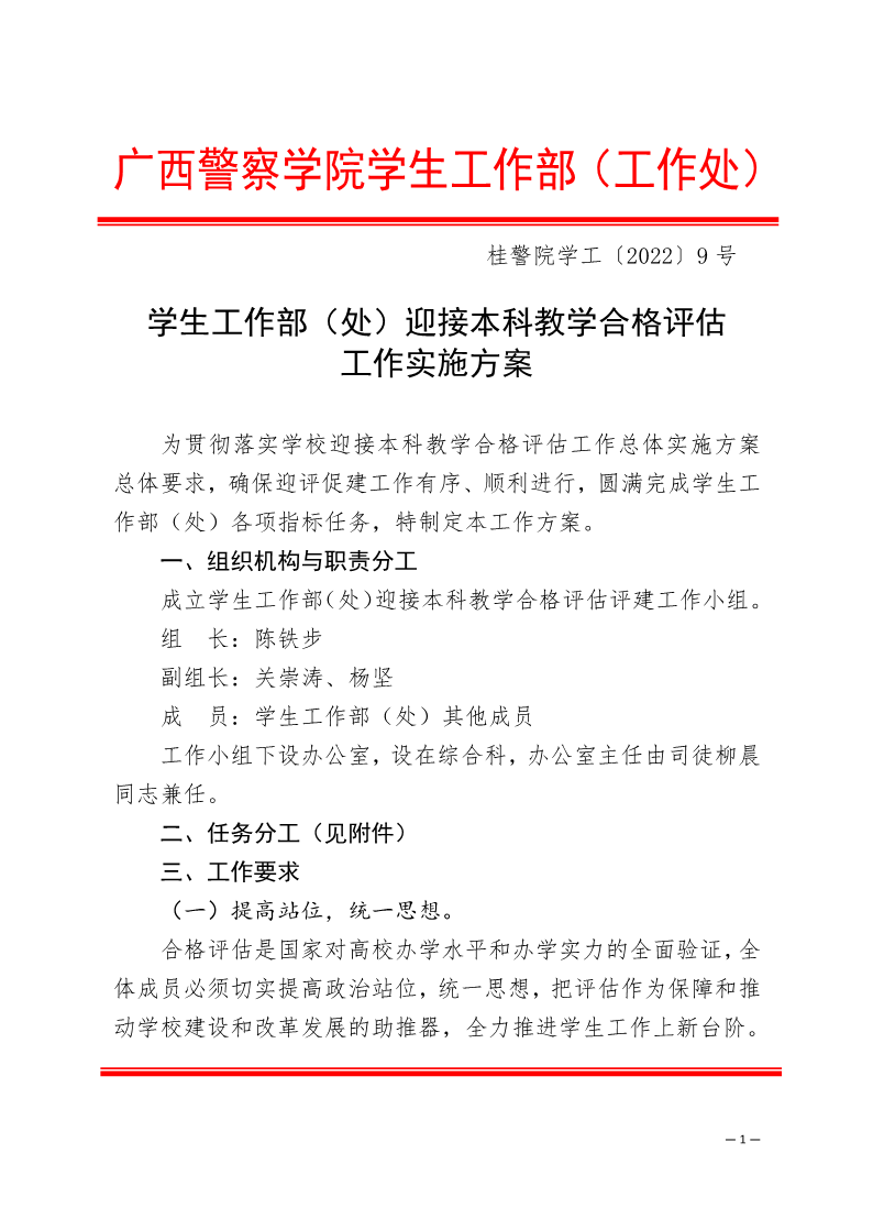 学生工作部(处)迎接本科教学合格评估工作实施方案 来源: 发布时间:2022-03-03 15:00:59 浏览次数: 次 【字体:小 大】 附件:beat365唯一官方网站本科教学工作合格评估评建任务分解表(学生工作部).pdf 分享到: 【打印正文】
