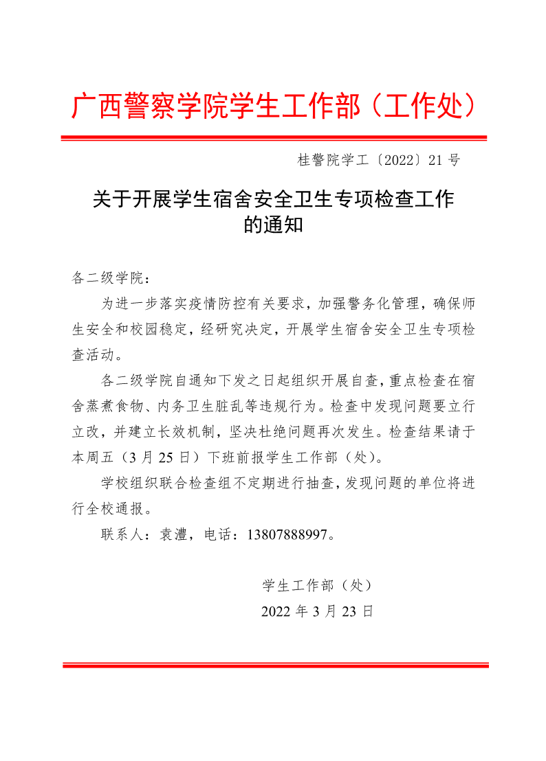 关于开展学生宿舍安全卫生专项检查工作的通知