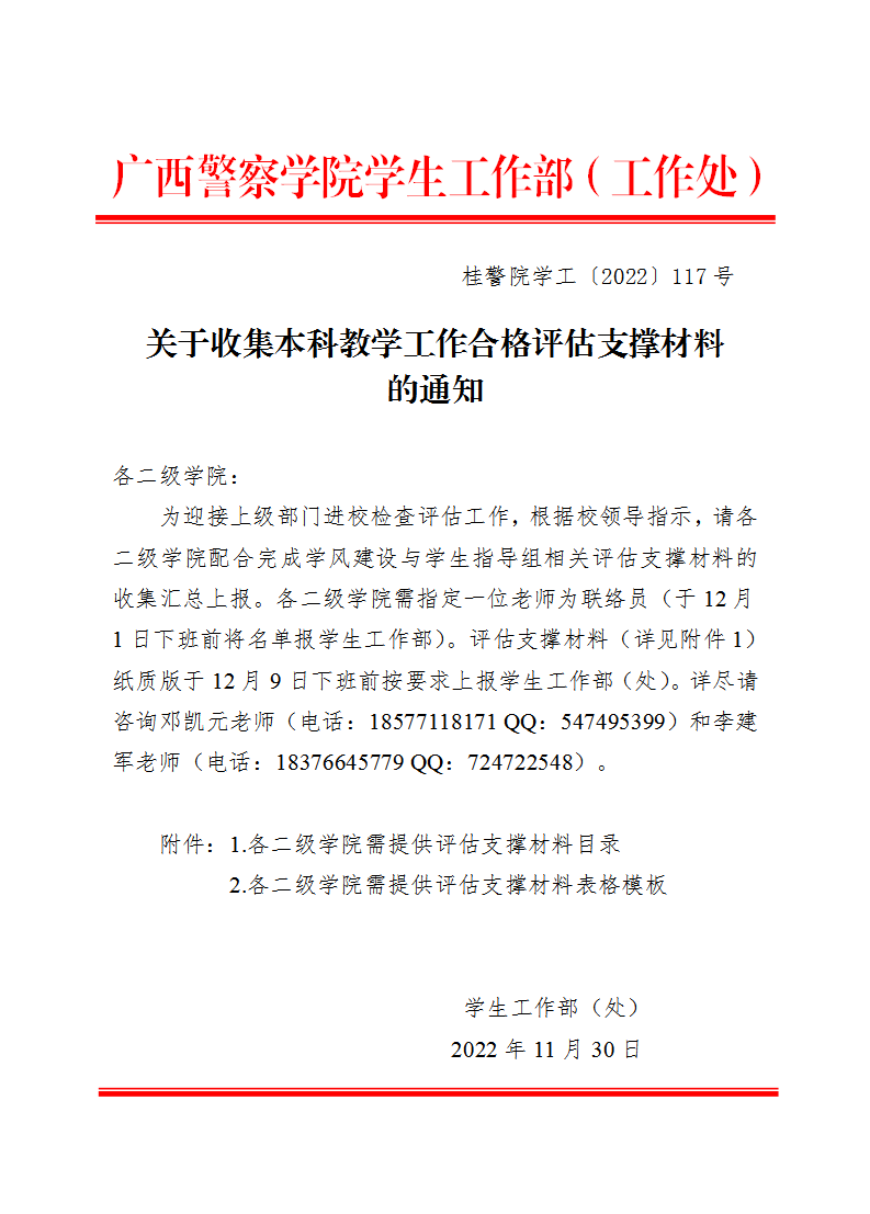 关于收集本科教学工作合格评估支撑材料的通知