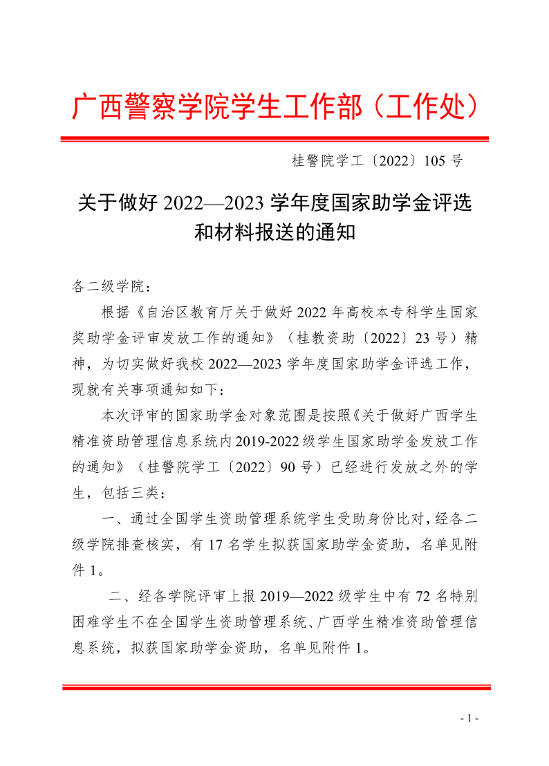 关于做好2022—2023学年度国家助学金评选和材料报送的通知