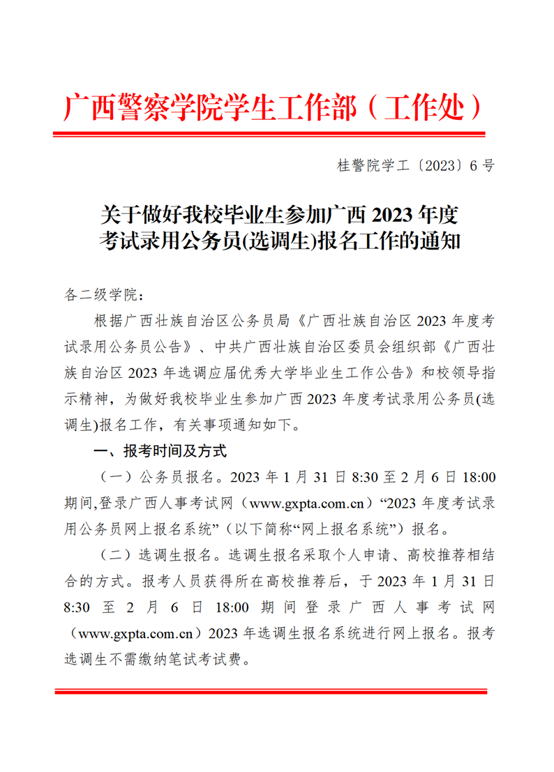 关于做好beat365官网毕业生参加广西2023年度考试录用公务员(选调生)报名工作的通知 来源: 发布时间:2023-01-30 09:00:26 浏览次数: 次 【字体:小 大】 分享到: 【打印正文】
