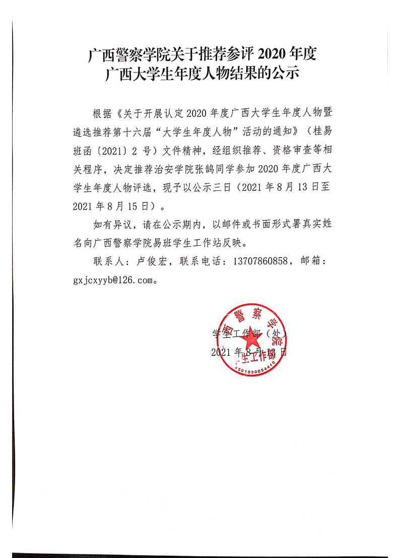 beat365唯一官方网站关于推荐参评2020年度广西大学生年度人物结果的公示
