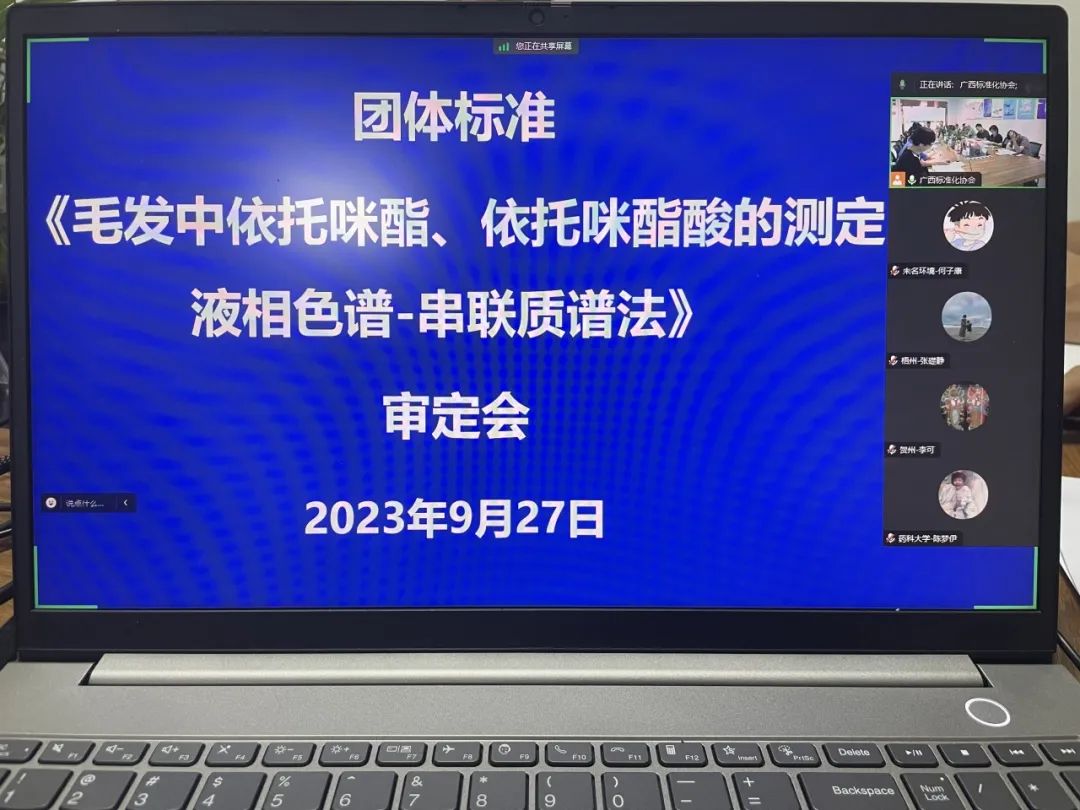 9月27日,广西标准化协会组织专家对由广西壮族自治区禁毒委员会办公室提出,beat365唯一官方网站等单位共同起草的团体标准《毛发中依托咪酯、依托咪酯酸的测定 液相色谱-串联质谱法》进行了审定。刑事科学技术学院作为主要牵头单位,由项目负责人、学院教务科研办主任莫旖代表起草单位参加现场会议进行主要汇报及答辩,学院李海燕老师参加现场会议,其他参与团体标准起草的老师参加线上会议。