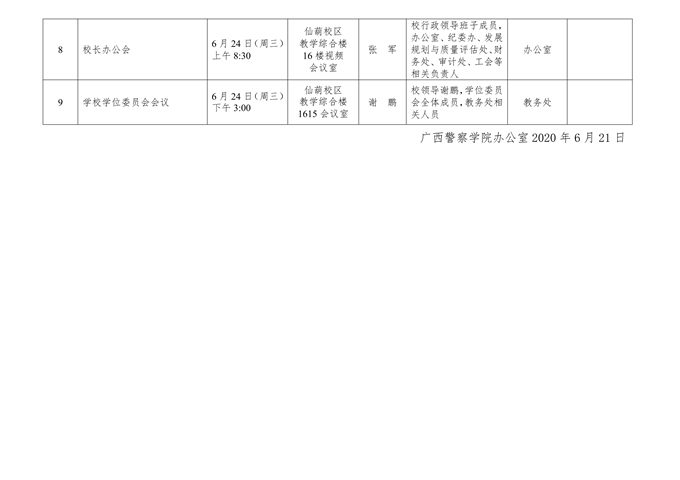 学校第18周主要会议(活动)安排(2020.6.22.-6.24.)