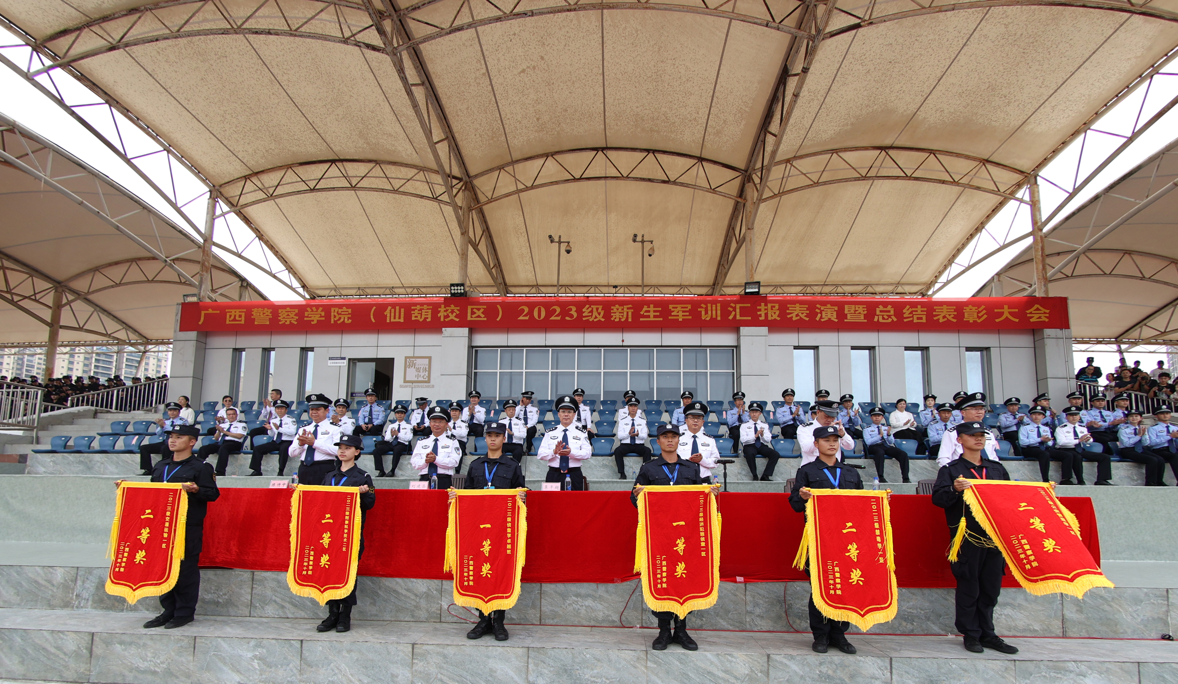 学校举行2023级新生军训汇演暨总结表彰大会