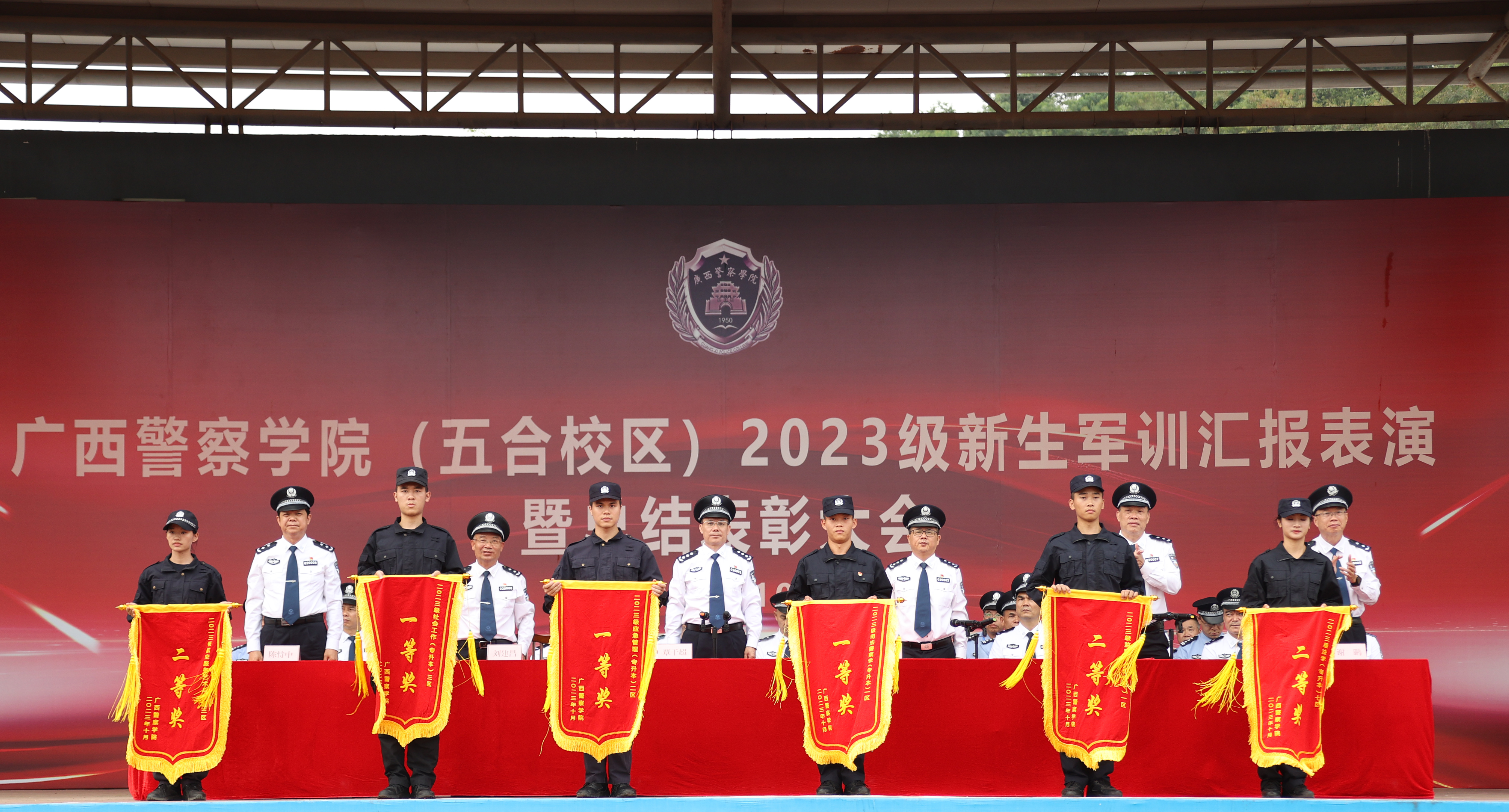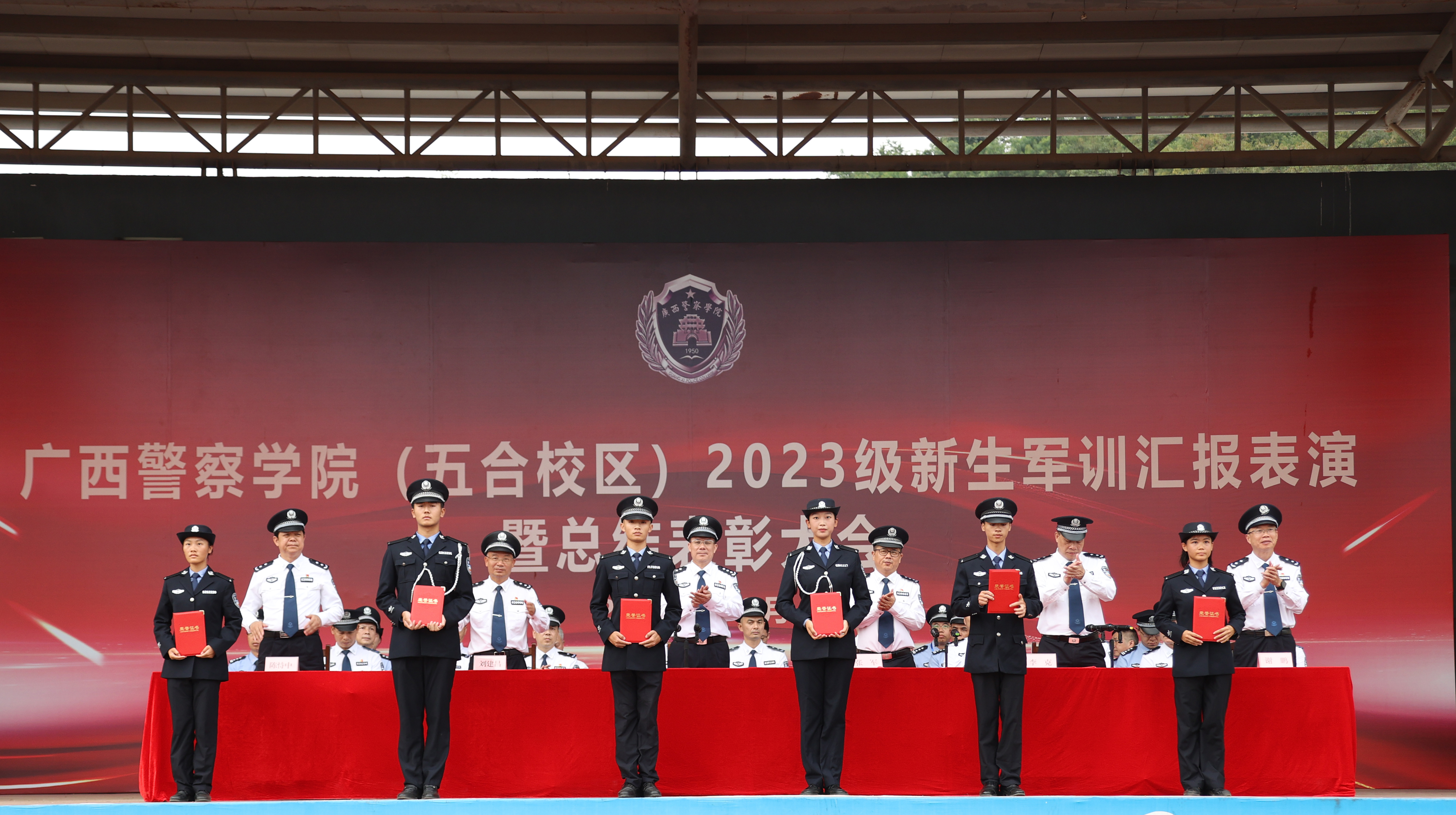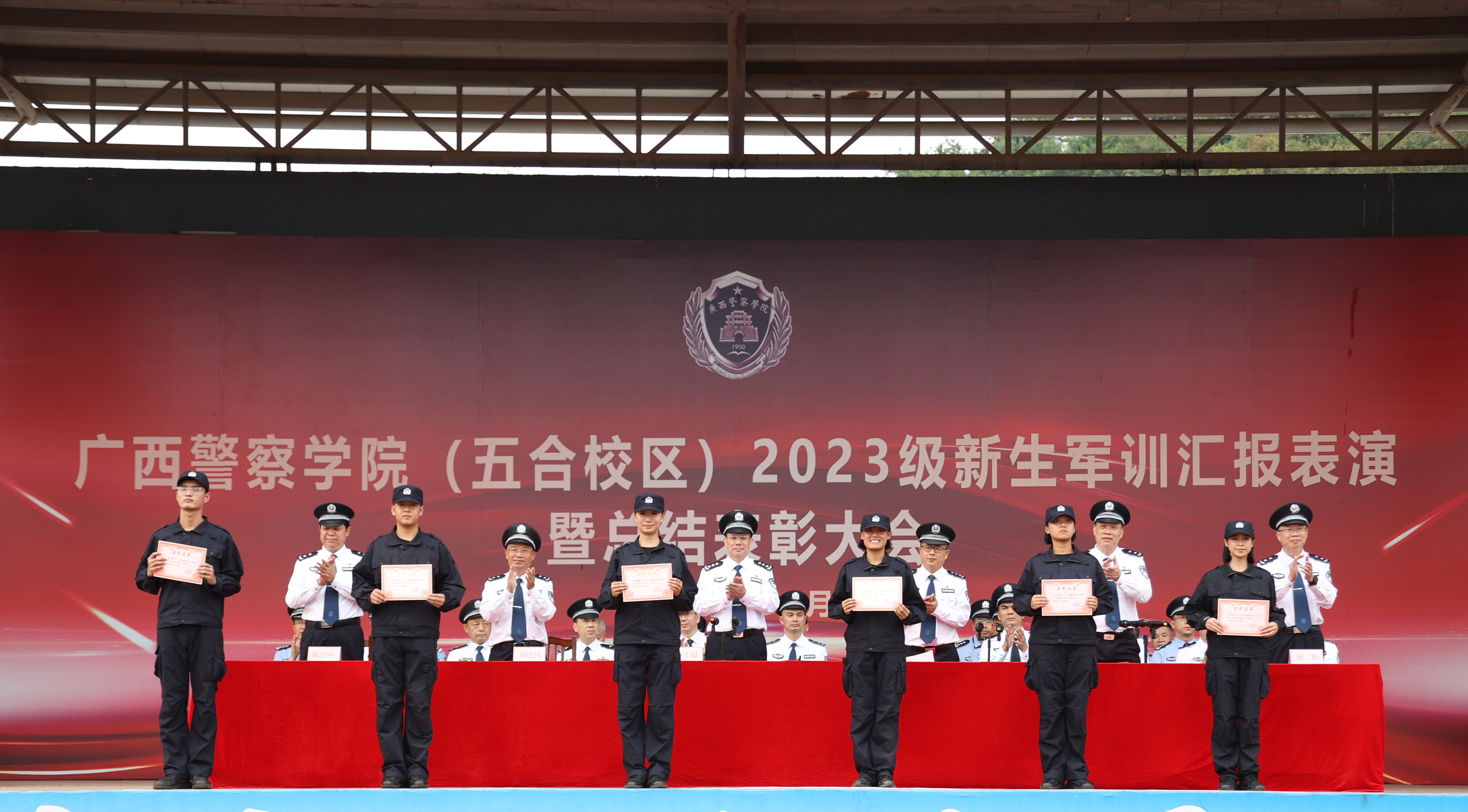 学校党委书记覃干超向付出辛勤劳动的教官、教师们表示感谢,向圆满完成军训各科目训练的2023级同学和获得表彰的先进集体、先进个人表示热烈祝贺。