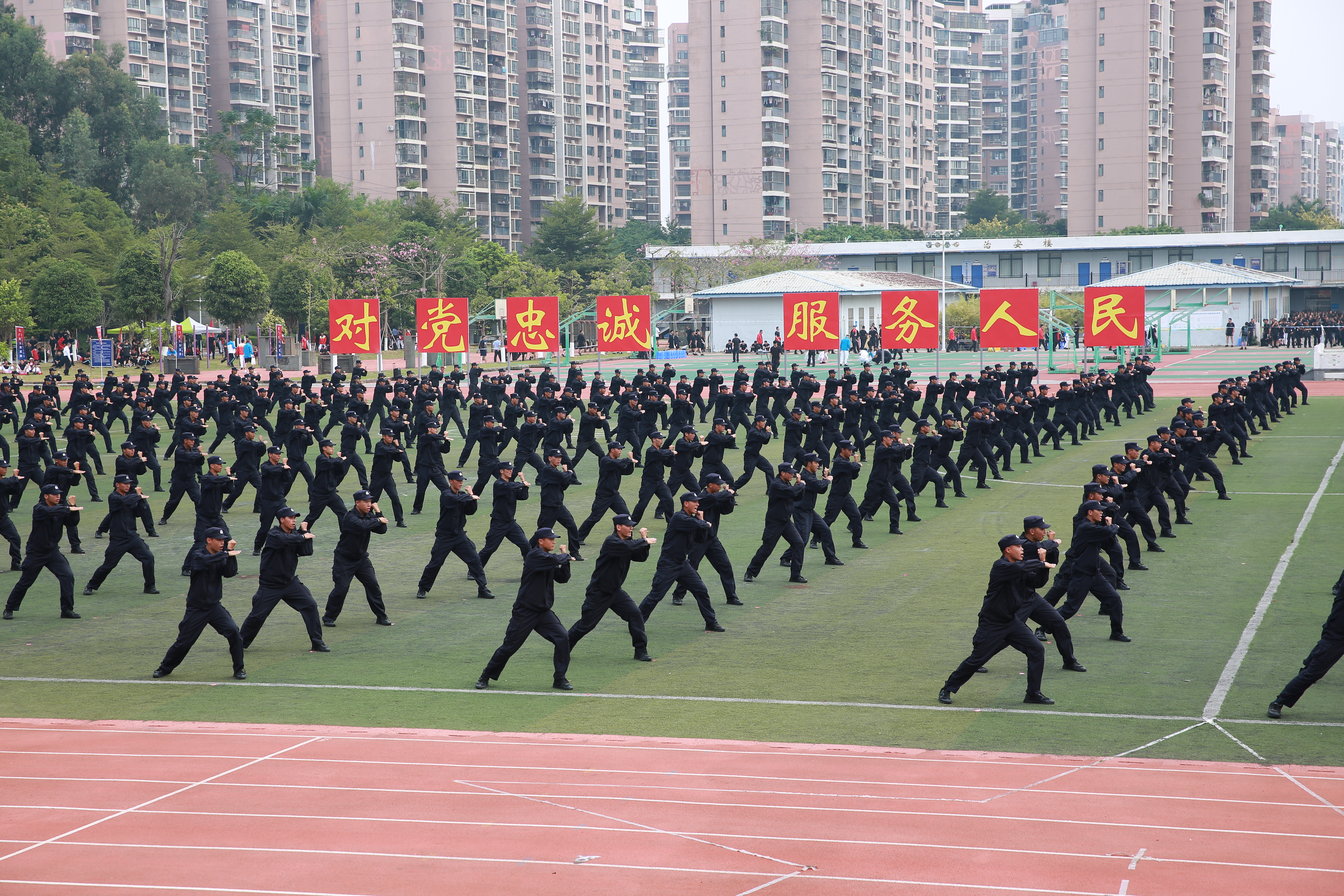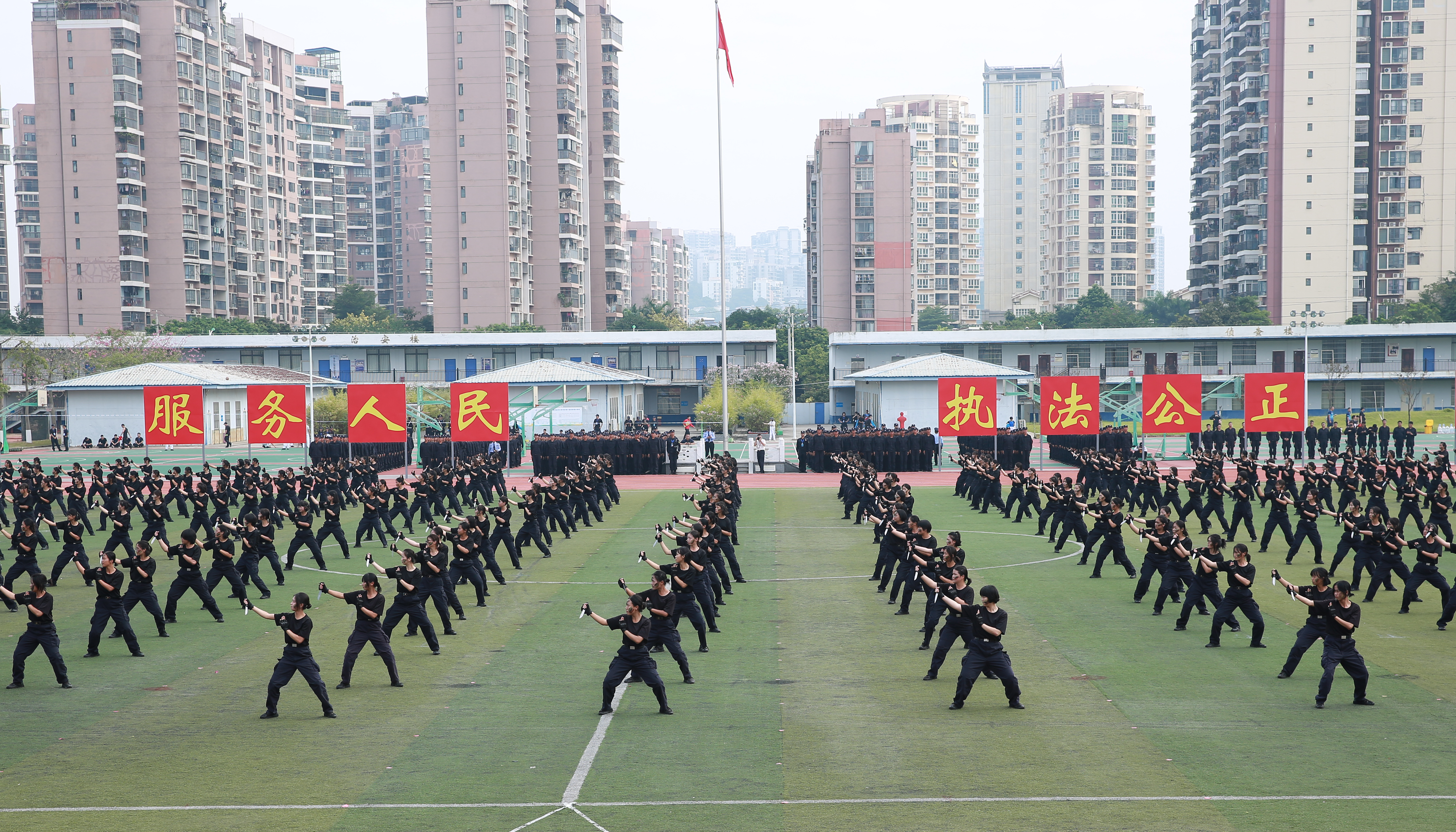 胸怀从警志,铁血铸忠魂。由800名学校2023级公安专业新生组成的擒敌拳表演方块,进行了精彩的擒敌拳表演。新生们在军训中刻苦训练,磨炼意志,超越自我,黝黑的皮肤是骄阳下的印记,洪亮的拼杀声是预备警官们最耀眼的风采,展现出警院学子昂扬向上的精神面貌。