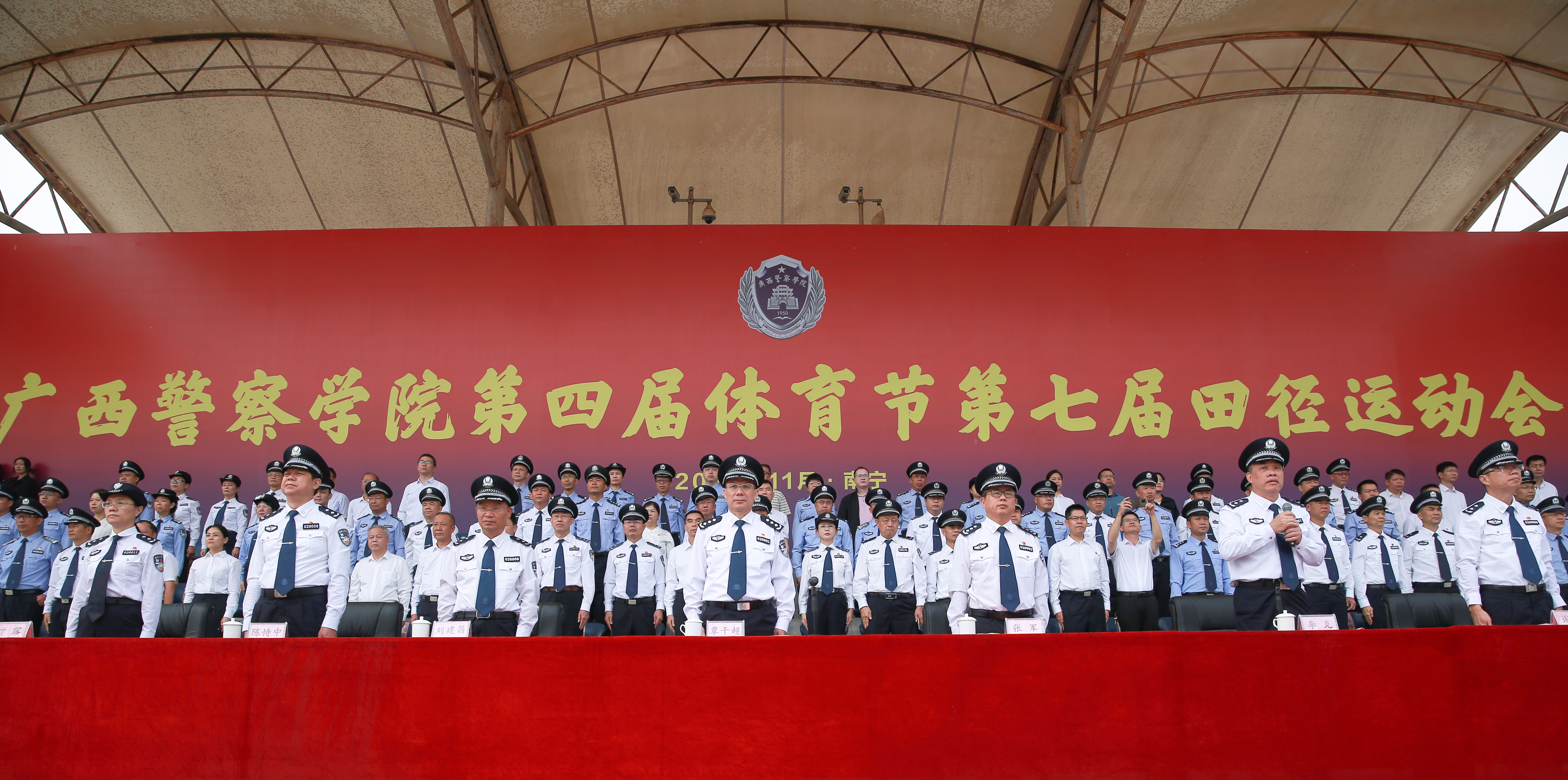 学校党委书记覃干超在开幕式上致辞,他回顾了今年以来学校在推行体育教学改革、丰富体育教学内容方面取得的成果和学校体育代表队在广西公安系统第四届警体运动会等各类比赛取得的优异成绩,充分肯定了警院人“团结协作、顽强拼搏、敢打敢拼、能打善赢”的体育精神。他强调,希望同学们发扬奥林匹克精神和中华体育精神,摆平心态、放下包袱,胜不骄、败不馁,尽情享受体育节期间比赛、学习、交流的每一个过程,并以此次运动会为契机,把朝气蓬勃、生龙活虎的拼搏精神,同舟共济、众志成城的团结协作精神转化到学习中去、工作中去,向本科教学工作合格评估发起决胜冲刺。