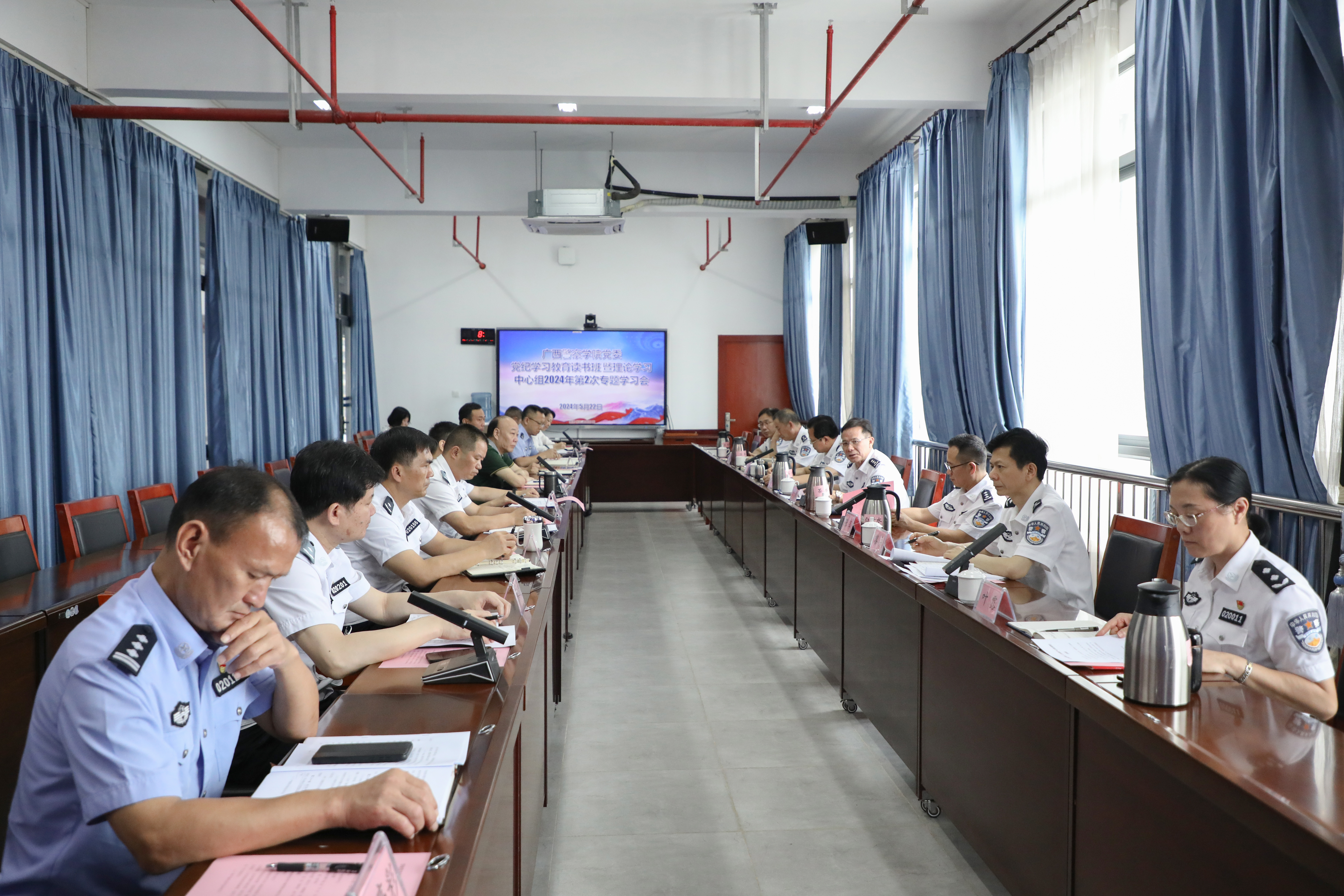 5月22日,学校党委党纪学习教育读书班暨学校党委理论学习中心组2024年第2次专题学习会在仙葫校区教学综合楼16楼视频会议室召开,学校党委书记覃干超主持会议。