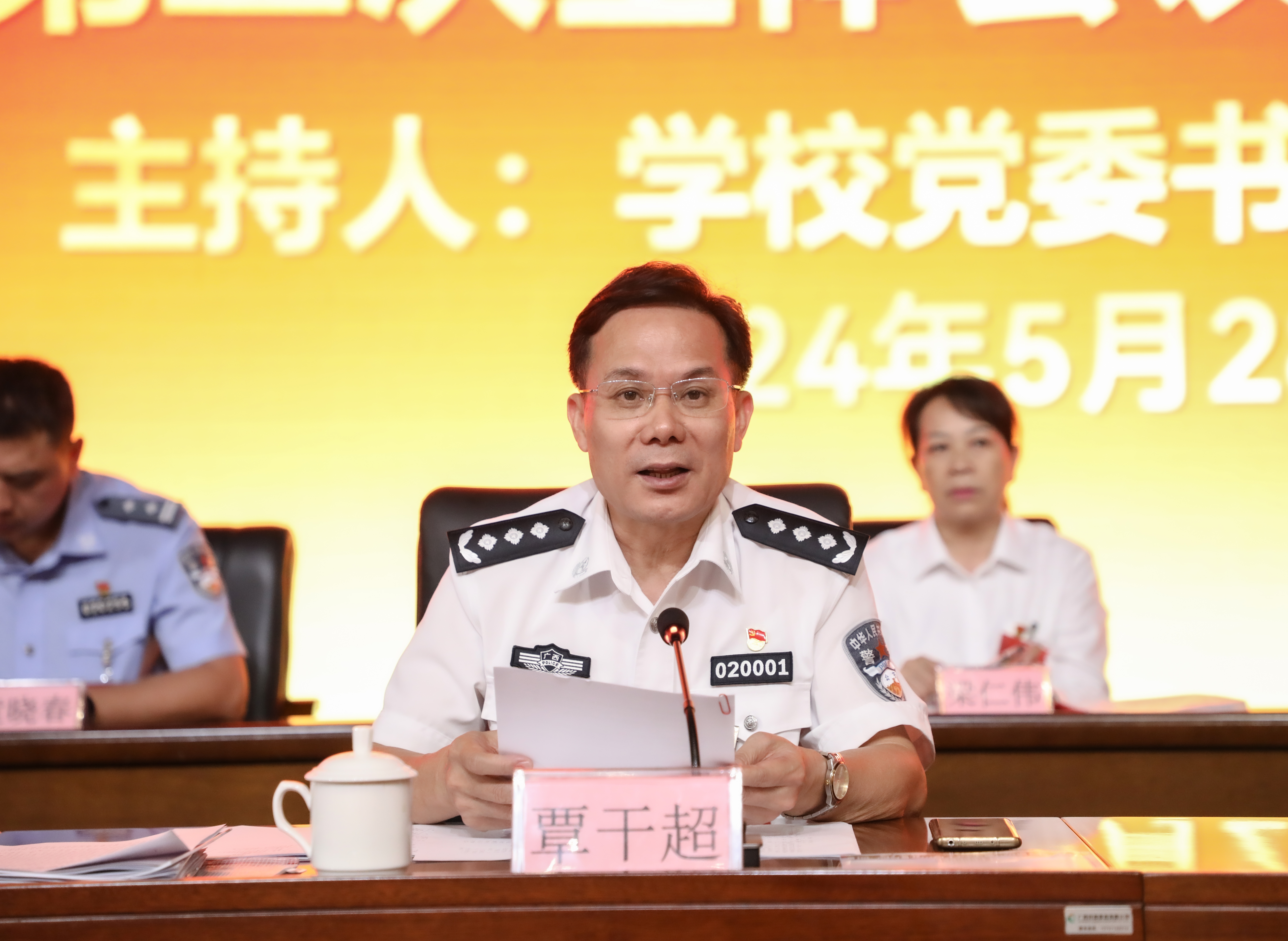 覃干超强调,前进道路上,要把政治建校、政治育警方针贯穿学校工作始终,永葆“公安姓党”根本政治属性;要完整、准确、全面贯彻新发展理念,进一步厚植专业高质量发展基础、加强师资队伍建设、推动产学研融合发展、推进智慧校园建设,推动学校高质量发展;要坚持全面从严管党治警,深入推进新时代党的建设新的伟大工程;要把师生对美好生活的向往作为我们的奋斗目标,用心用情为师生办实事、解难事、做好事。全校上下要埋头苦干、砥砺前行,加快区域高水平应用型公安本科院校创建步伐,不懈推进公安教育现代化,为谱写中国式现代化广西篇章作出警院的更大贡献。