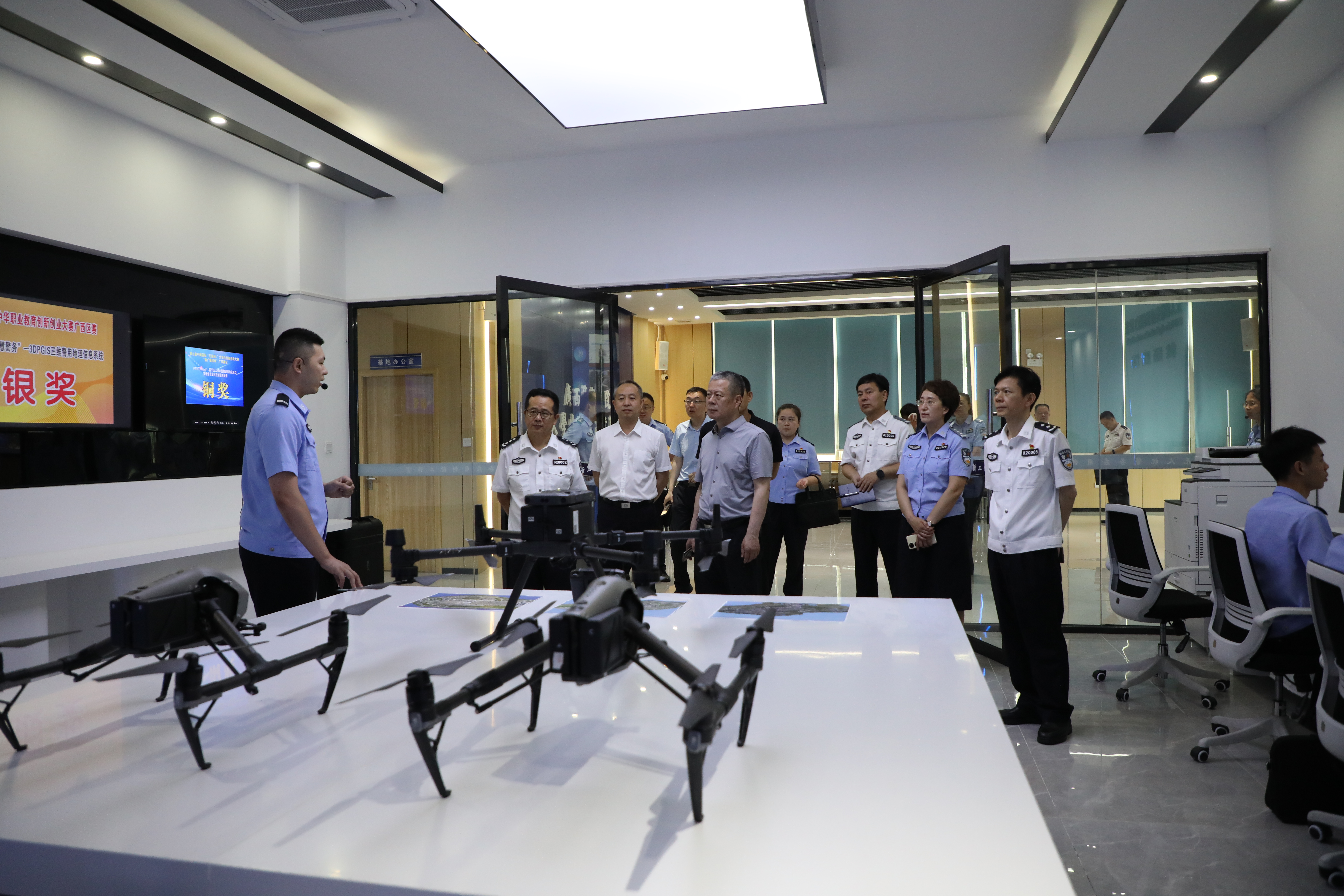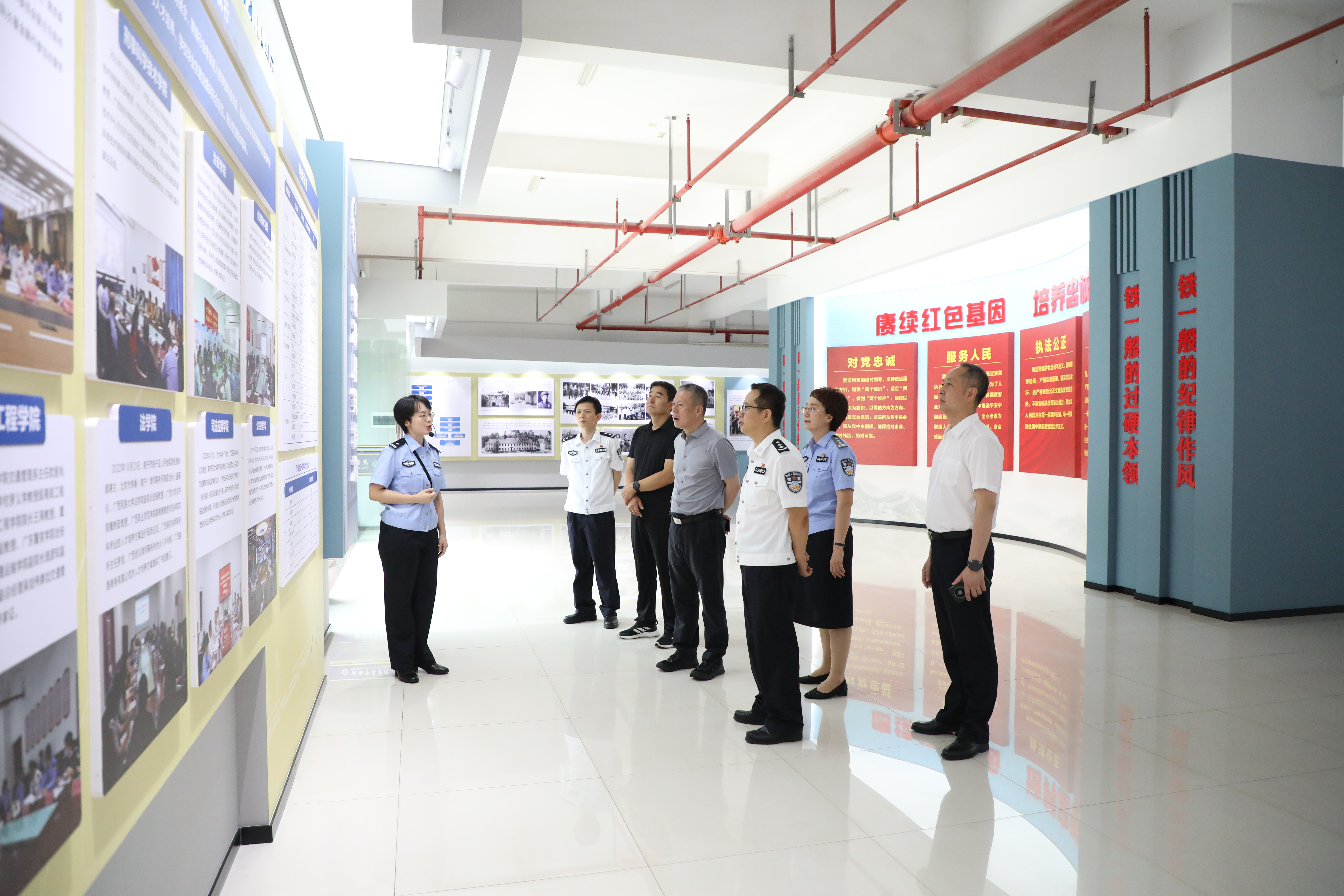 孟翔飞一行实地调研了beat365官网仙葫、五合两个校区,先后参观了办学成果展、大学生创新创业基地、公安大数据产业学院、法文化馆,考察了司法应用学院、法学院、公共管理学院的实验室。