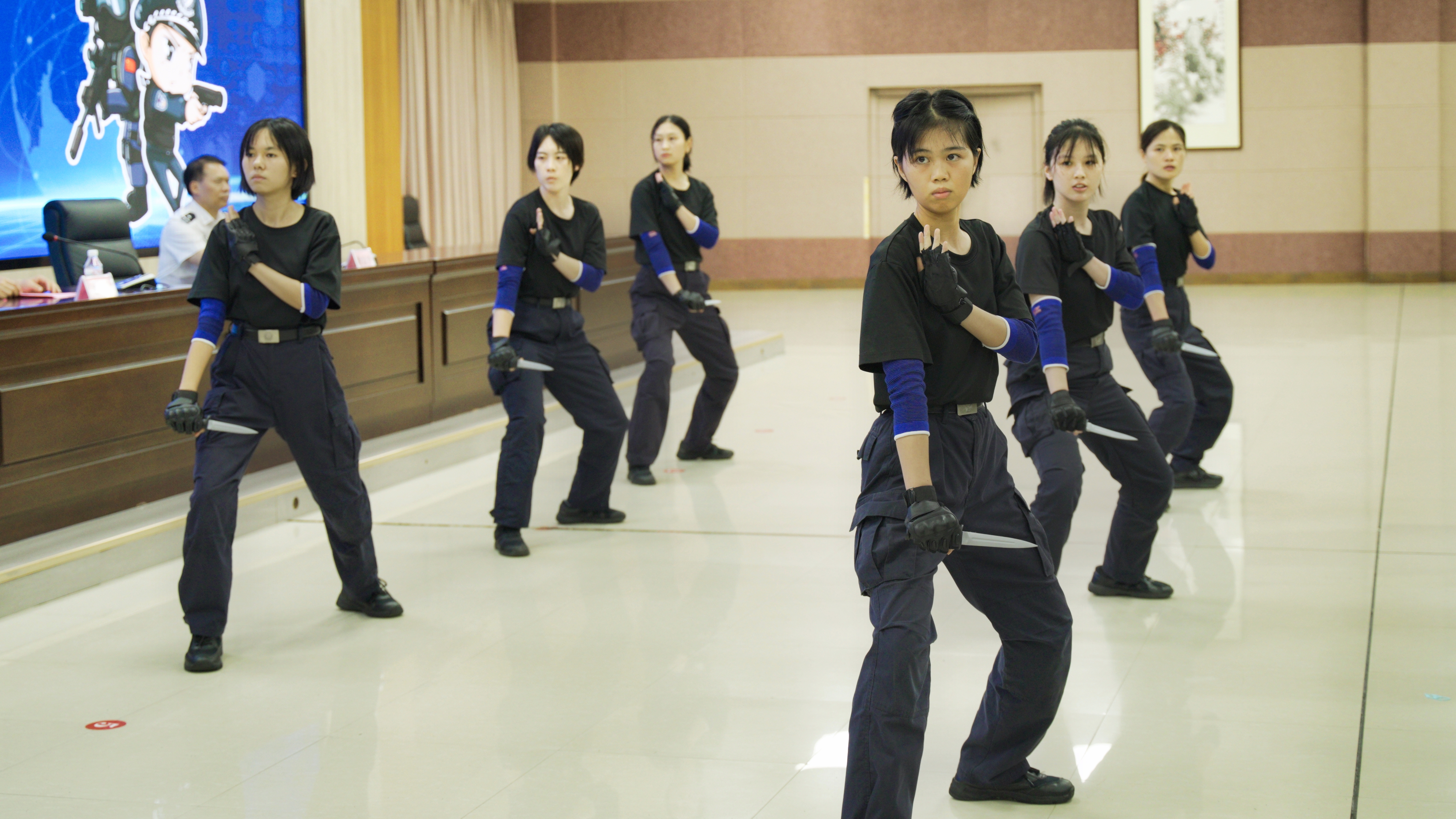 夏令营小教官团队表演警务队列、擒敌拳、匕首操等训练科目