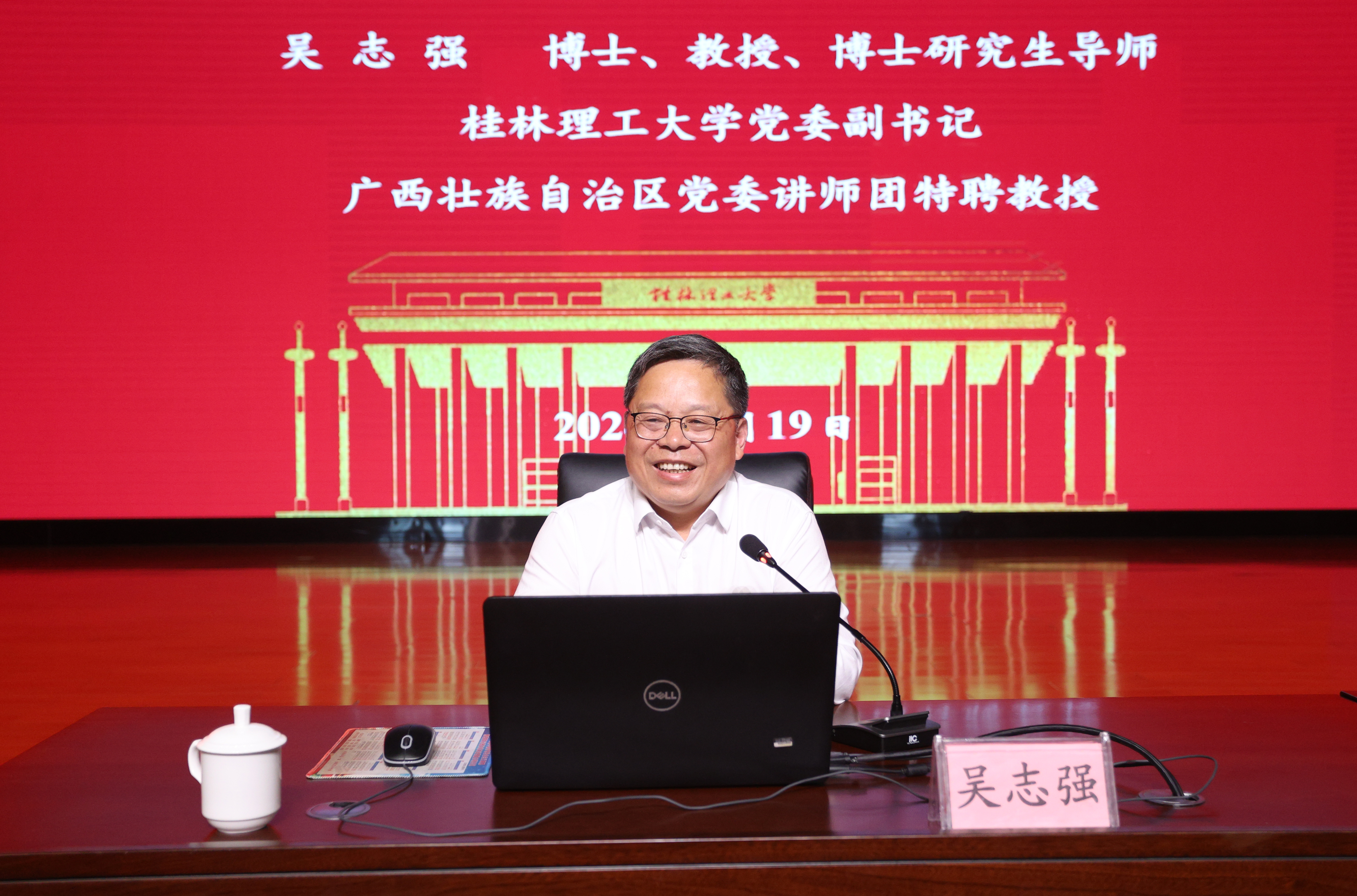9月19日上午,学习贯彻党的二十届三中全会精神自治区党委讲师团特聘教授(专家)宣讲报告会在beat365官网仙葫校区学术报告中心举行。自治区党委讲师团特聘教授(专家)、桂林理工大学党委副书记吴志强教授作宣讲报告。在家校领导副校长李克,自治区纪委监委驻学院纪检监察组组长、校党委委员、纪委书记黎东,校党委委员、总会计师叶露,副校长李兴林出席报告会。报告会由李克主持。