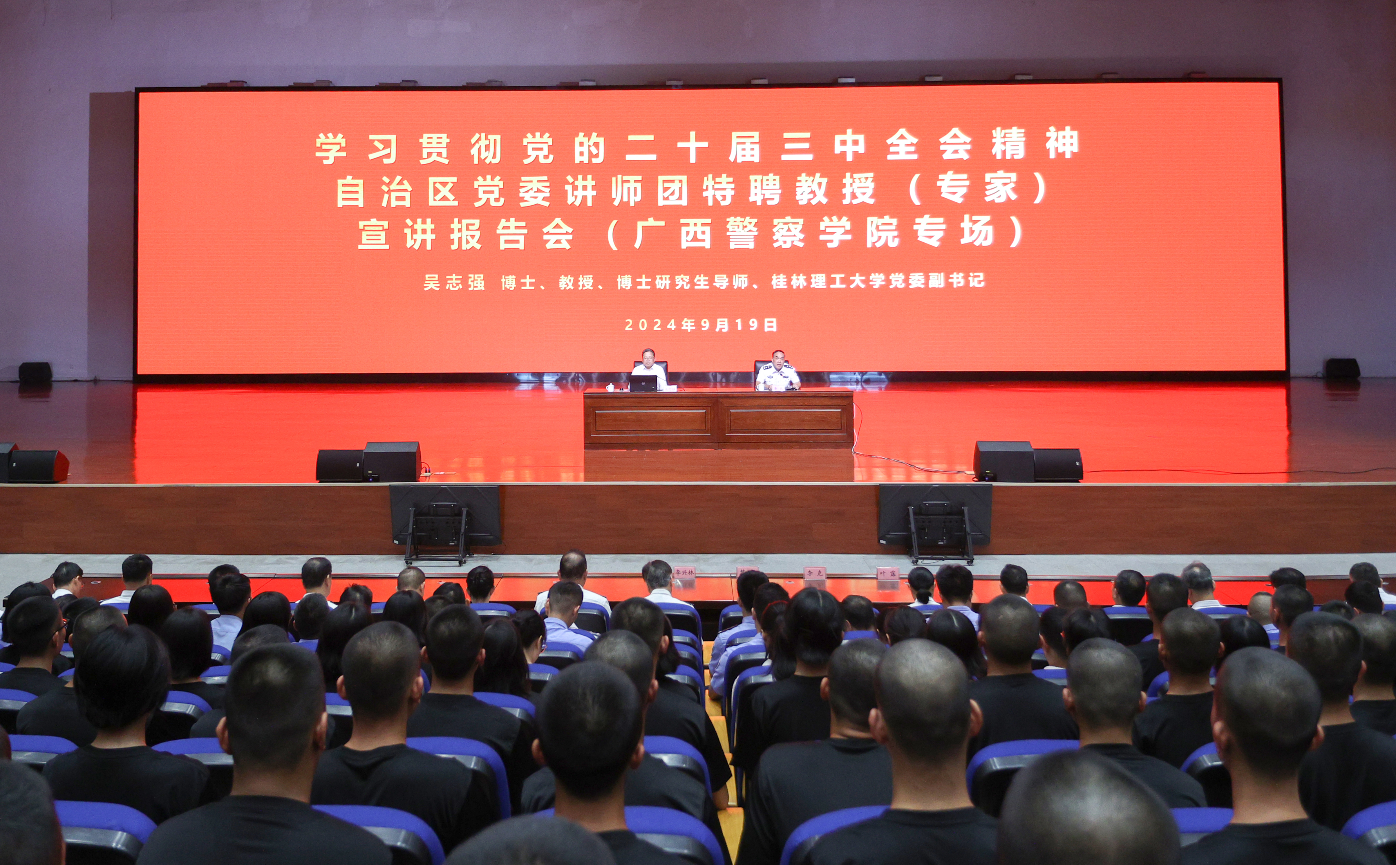 李克在主持报告会时指出,学习好贯彻好党的二十届三中全会精神,是当前和今后一个时期全党全国的一项重大政治任务。全校上下要以本次报告会为契机,深入学习贯彻党的二十届三中全会精神,把思想和行动统一到全会精神上来,把学习全会精神与学习习近平总书记关于全面深化改革的一系列新思想、新观点、新论断贯通起来,与学习贯彻习近平总书记关于教育和新时代公安工作的重要论述、关于广西工作论述的重要要求联系起来,把全会精神学深悟透、弄懂弄通。全校各级领导干部、全体师生要将学习成效切实转化为解放思想、创新求变的精神动力,转化为加快建设特色鲜明的区域高水平应用型公安本科院校的实际行动,为奋力谱写中国式现代化广西篇章作出警院贡献。