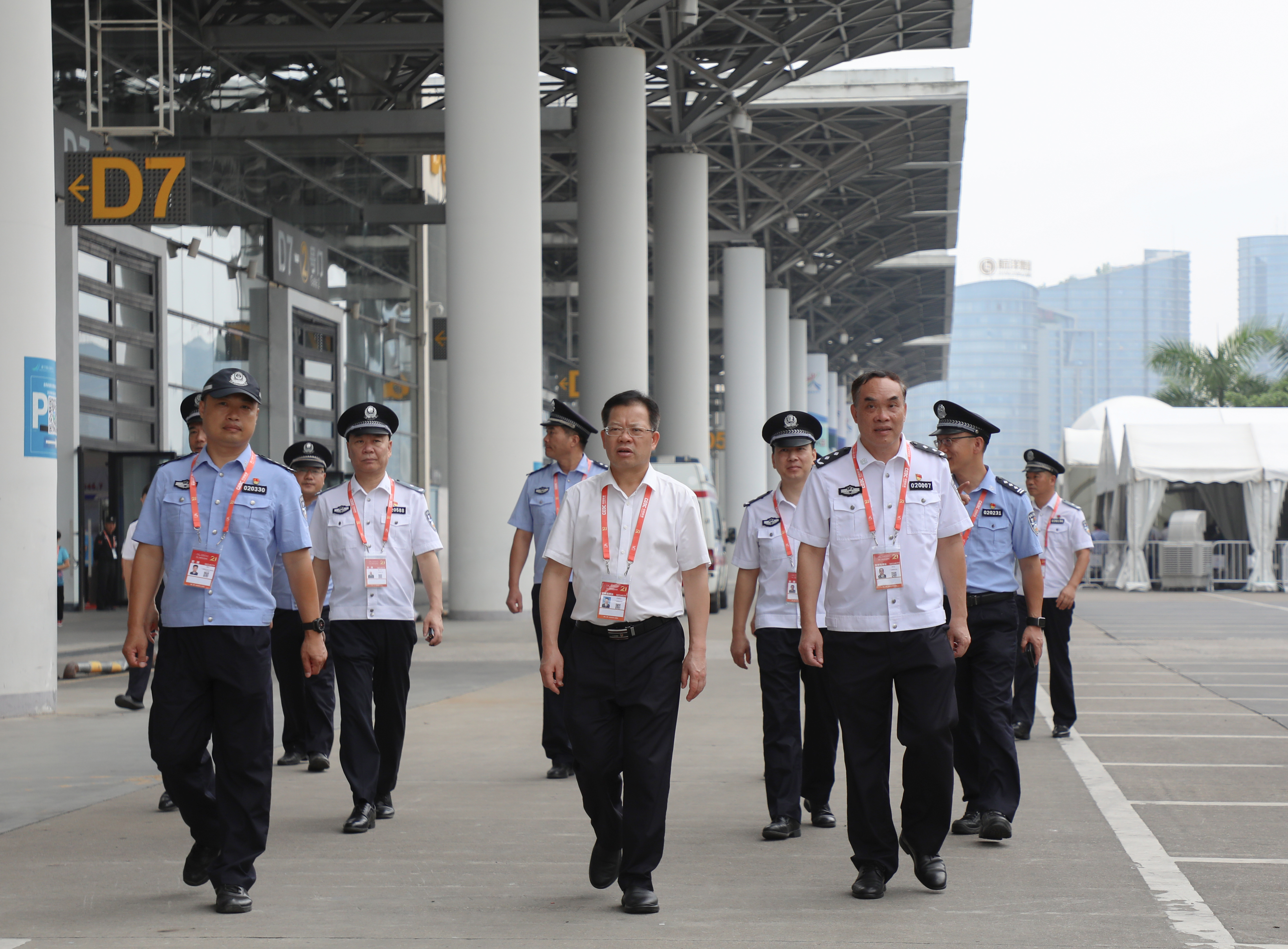 彭顺克来到南宁国际会展中心,详细了解了安检、人员部署和后勤保障等工作,向带队民警表示感谢,并与执勤师生进行交流。