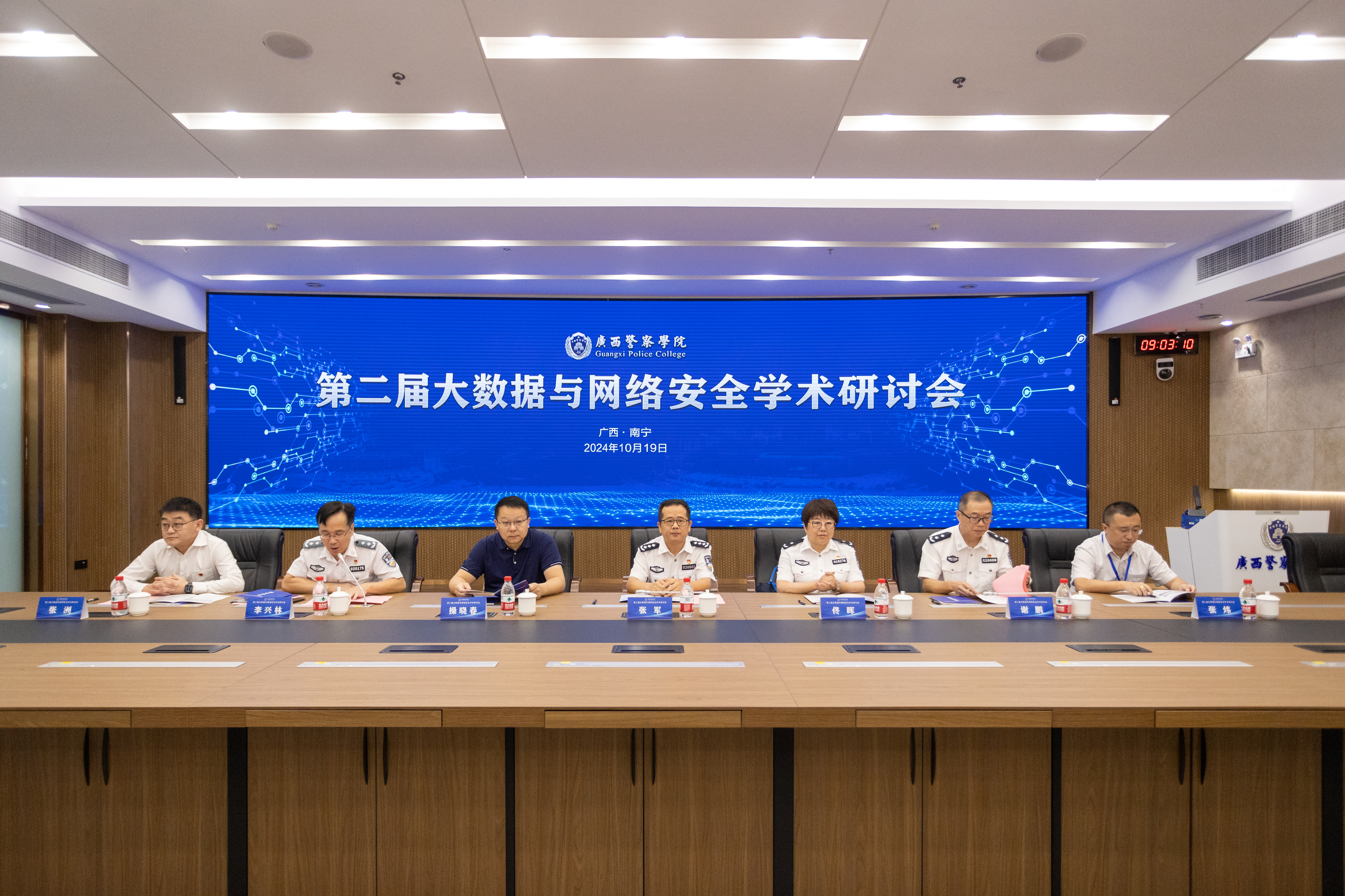 为认真贯彻落实科技兴警三年行动计划,推进公安院校、公安实战单位在大数据与网络安全领域的学术交流,10月19日,学校在仙葫校区智慧公安研训基地举办第二届大数据与网络安全学术研讨会。研讨会邀请自治区公安厅党委委员、副厅长,南宁市副市长、市公安局党委书记、局长李瑜;全国公安高等教育教学名师、北京警察学院副校长、教授佟晖;国家杰出青年科学基金获得者、中山大学信息学部副主任、网络空间安全学院院长、教授操晓春;苏州科达公共安全事业部副总经理、技术总监张炜等公安实战部门领导、高校学者、行业专家、企业代表等齐聚一堂,充分交流思想、汇聚智慧。学校党委副书记、校长张军,学校党委委员、副校长谢鹏,副校长李兴林出席研讨会。研讨会由李兴林主持。