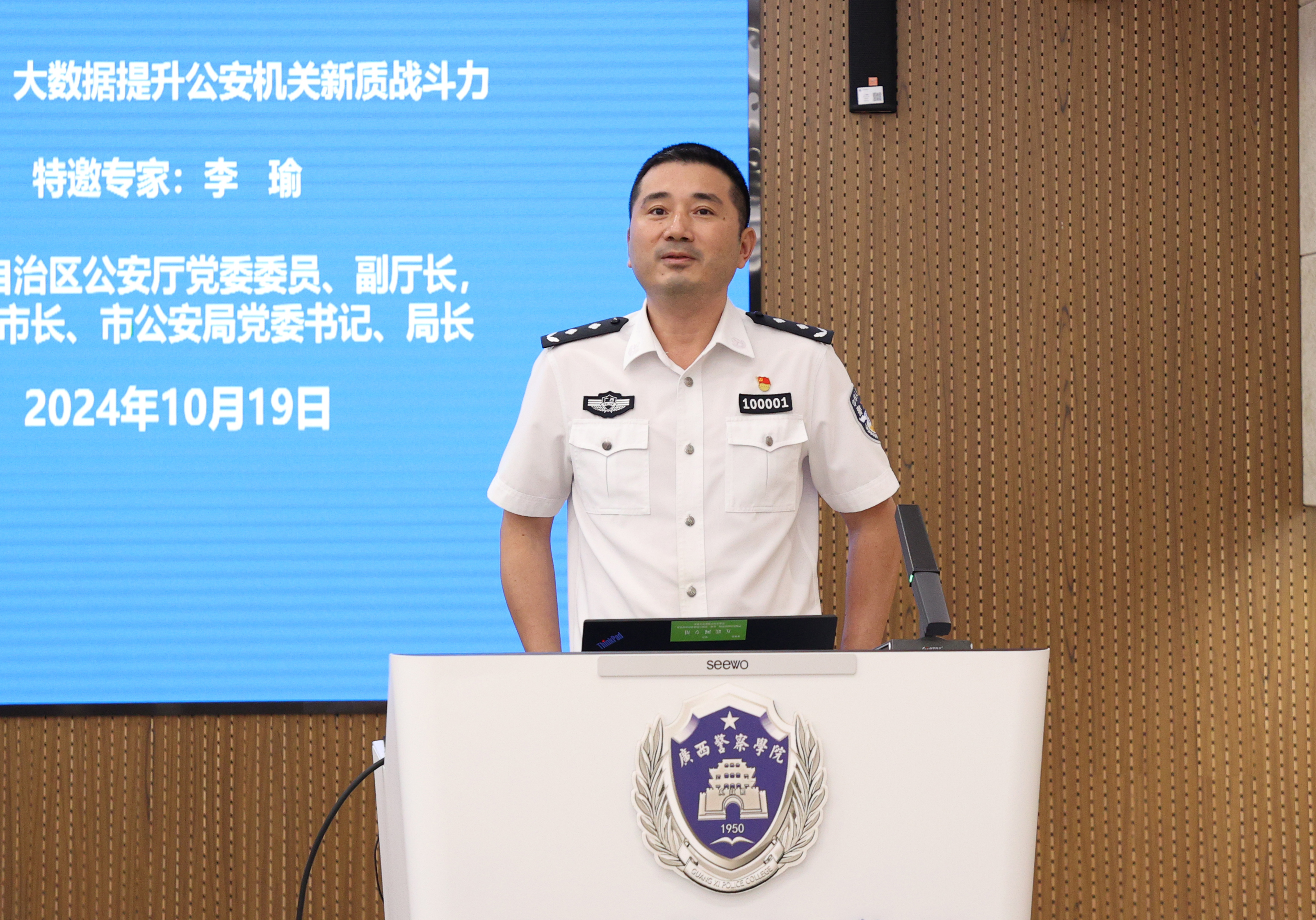 自治区公安厅党委委员、副厅长,南宁市副市长、市公安局党委书记、局长李瑜作主旨报告