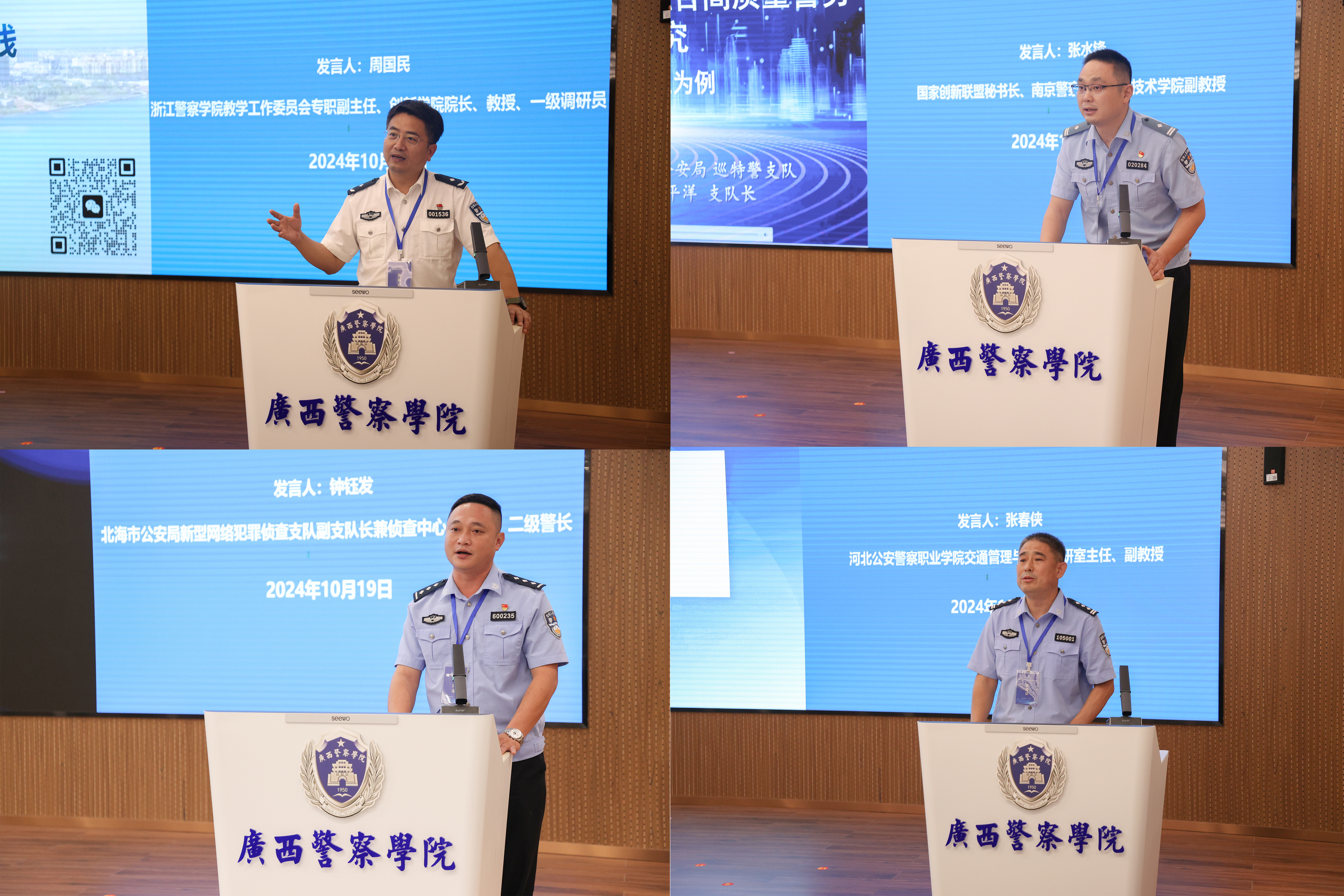 李瑜、佟晖、操晓春、张炜分别以《大数据提升公安机关新质战斗力》《基于“五共五真”的网络安全与执法专业图谱构建与应用研究》《人工智能驱动的网络空间治理技术探索与实践》《智驭视界公安视频侦查——大模型织网和大数据赋能的实战探索》为题目作主旨报告。