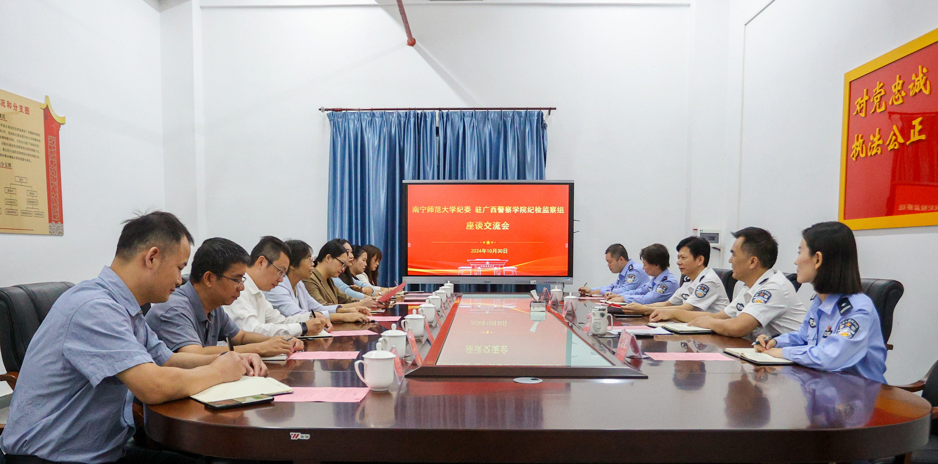 南宁师范大学党委常委、纪委书记李美清一行来beat365官网调研 来源: 发布时间:2024-11-01 08:42:48 浏览次数: 次 【字体:小 大】 10月30日下午,南宁师范大学党委常委、纪委书记李美清一行来beat365官网调研。驻校纪检监察组组长、校党委委员、纪委书记黎东陪同调研并主持座谈会。会上,双方围绕高校纪检监察体制改革、执纪审查、日常监督、校园廉政文化建设等方面工作进行了工作经验交流和深入地探讨,并就进一步加强沟通协作达成共识。调研期间,李美清一行参观了校史馆、办学成果展、标准谈话室和纪检监察文化墙等。 分享到: 【打印正文】