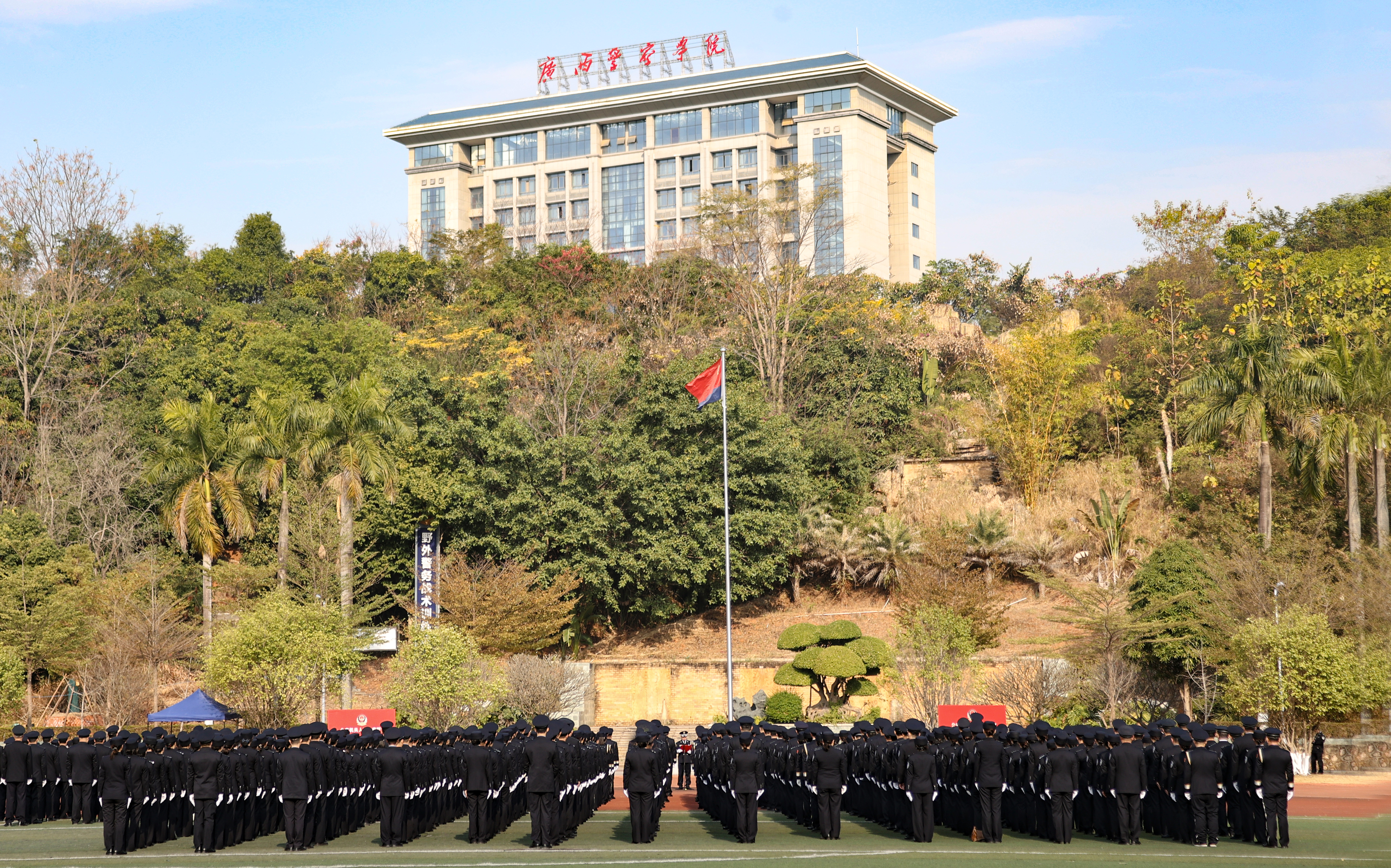 1月10日上午,学校在仙葫校区田径运动场举行升警旗仪式,庆祝第5个中国人民警察节,激励全校民警教师牢记从警初心,筑牢忠诚警魂,积极投身公安高等教育事业。学校党委书记彭顺克,学校党委副书记、校长张军,副校长李克,校党委委员、副校长陈恃中,自治区纪委监委驻学校纪检监察组组长、校党委委员、纪委书记黎东,校党委委员、副校长谢鹏,校党委委员、总会计师叶露,副校长李兴林出席升旗仪式。