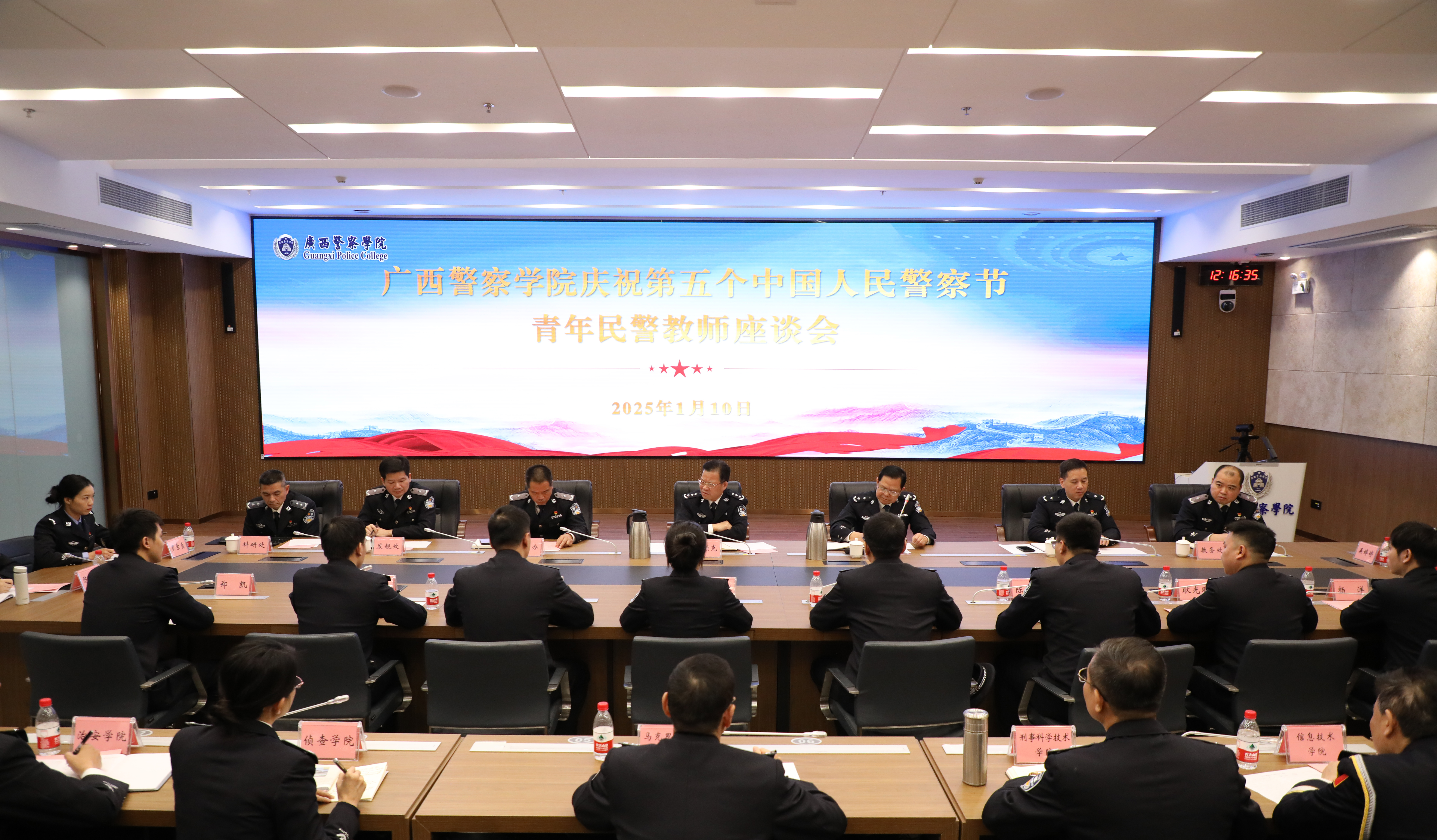 1月10日上午,学校在仙葫校区智慧公安研训基地召开庆祝第五个中国人民警察节青年民警教师座谈会,激励民警教师们在广西公安高等教育事业中彰显青春风采、贡献青春力量。学校党委书记彭顺克出席座谈会并讲话,学校党委委员、副校长陈恃中主持座谈会。