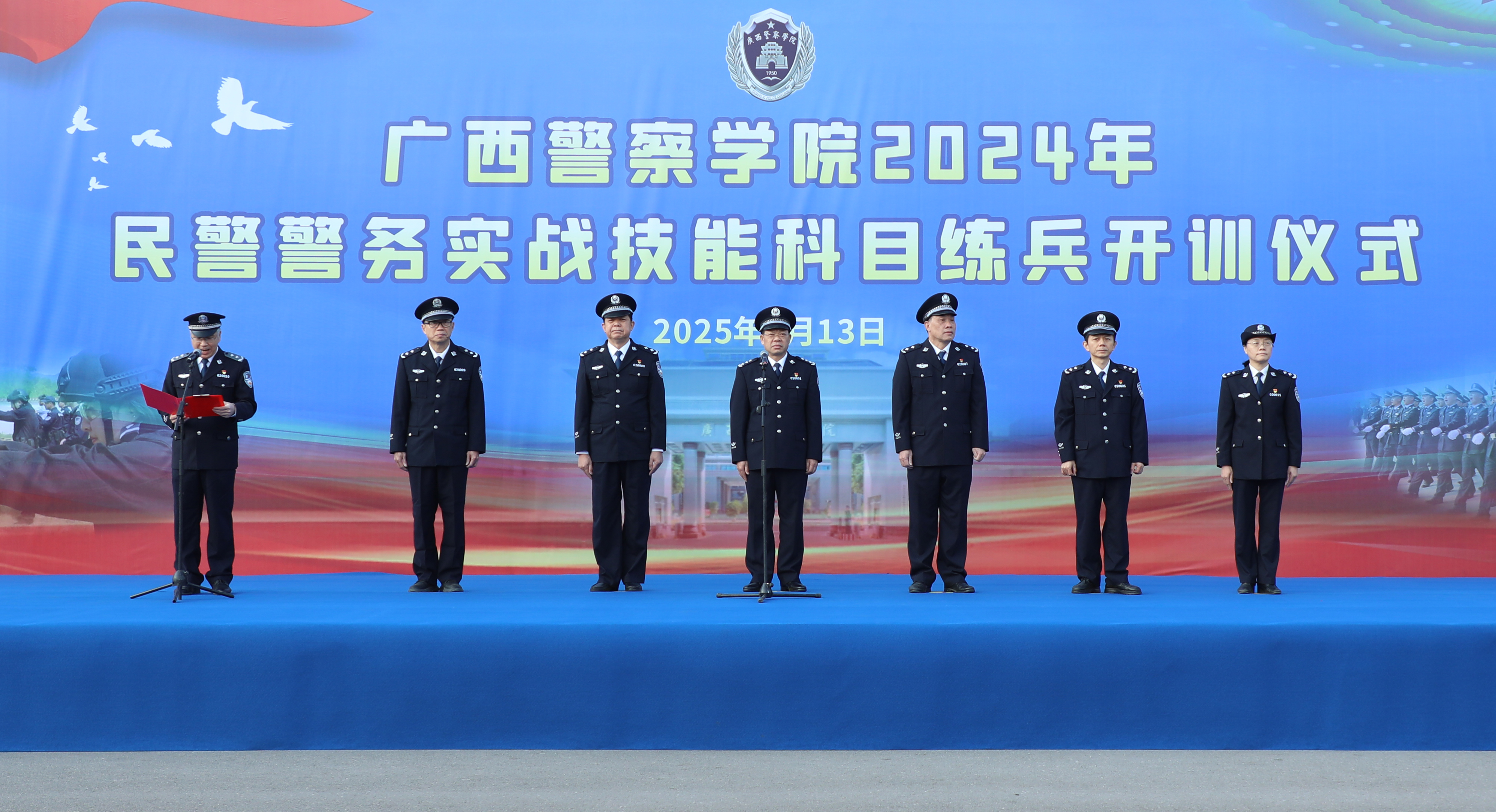 寒冬淬利刃,练兵正当时。1月13日上午,学校在仙葫校区举行2024年民警教师警务实战技能科目练兵开训仪式。学校党委书记彭顺克出席仪式并作开训动员讲话。副校长李克,校党委委员、副校长陈恃中,自治区纪委监委驻学校纪检监察组组长、校党委委员、纪委书记黎东,校党委委员、副校长谢鹏,校党委委员、总会计师叶露,副校长李兴林出席开训仪式。开训仪式由李兴林主持。
