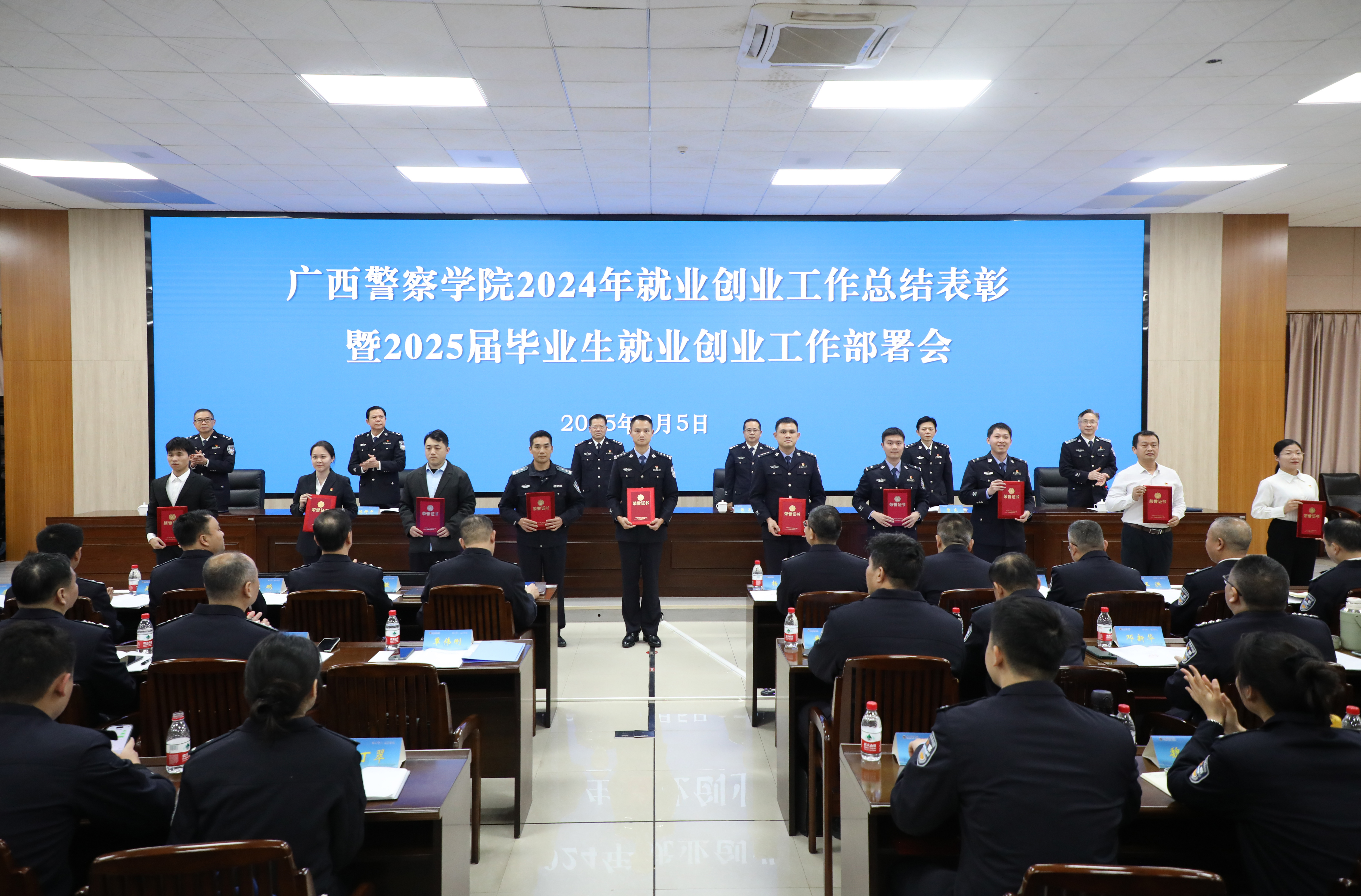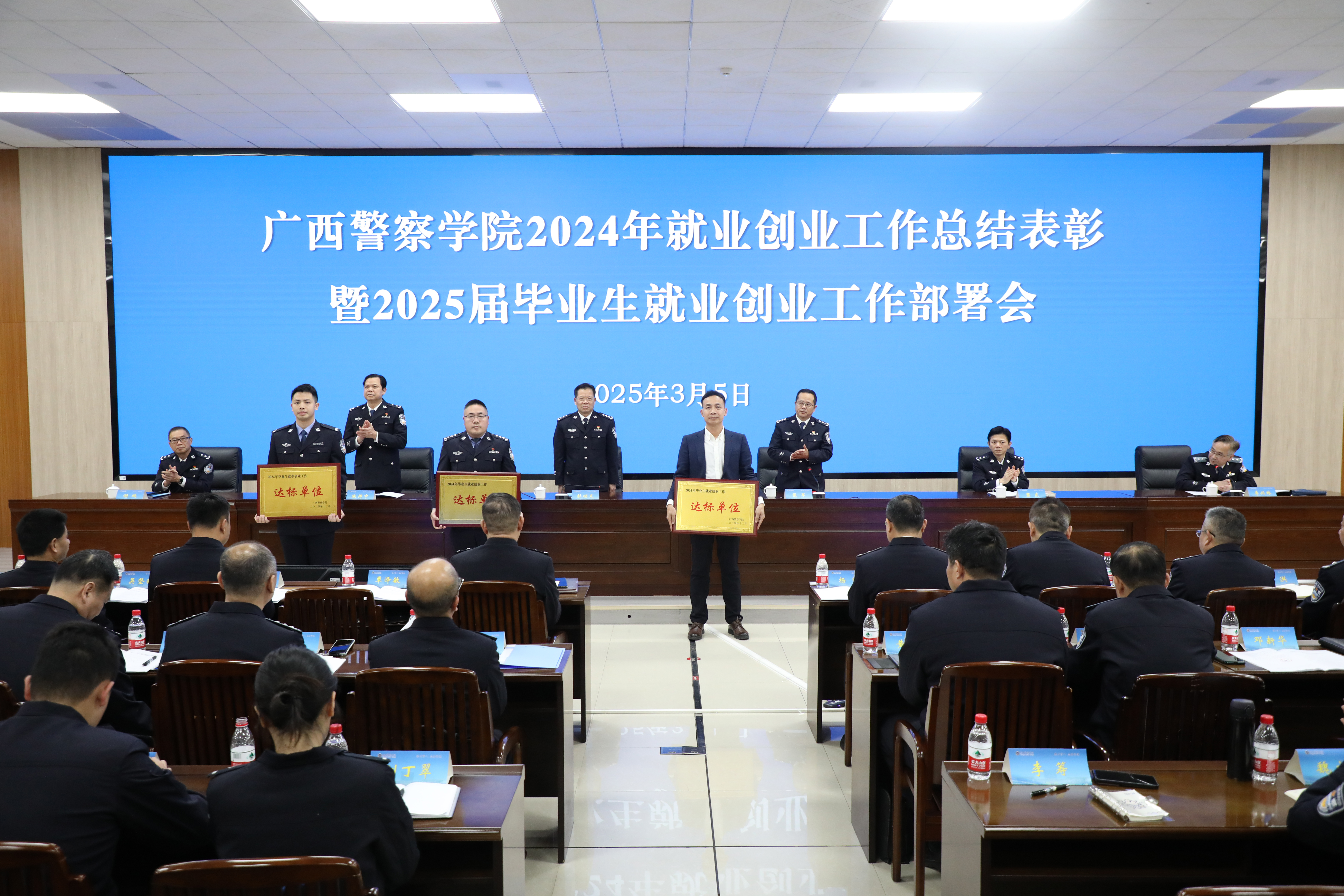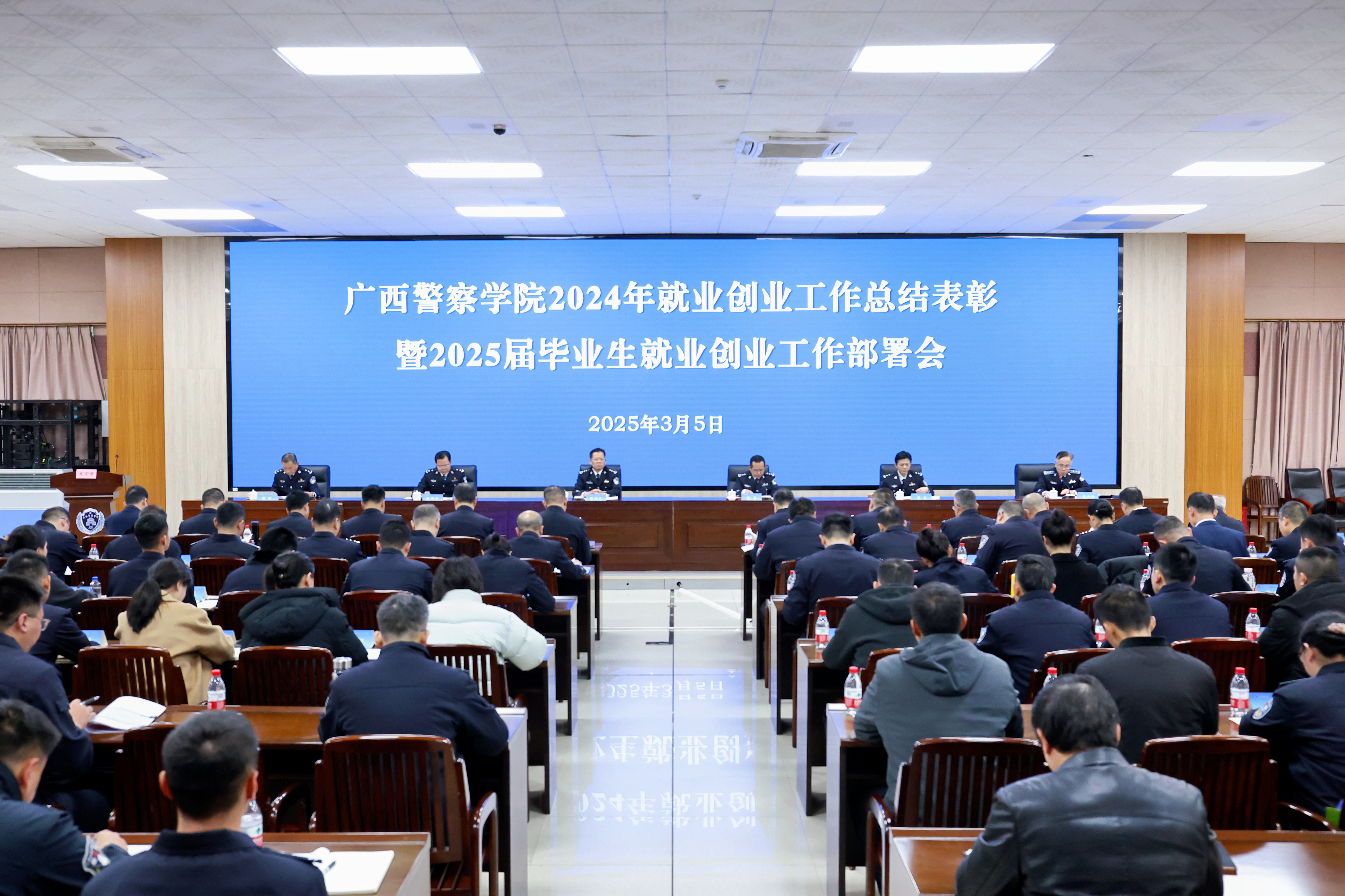 彭顺克就做好学校2025届毕业生就业工作提出五点要求:一是认清形势、锚定目标,下好高质量充分就业“先手棋”。深入贯彻习近平总书记关于就业工作的重要指示精神,贯彻落实全国、全区2025届普通高校毕业生就业创业工作视频会议精神,以“时时放心不下”的责任感,满弓紧弦、真抓实干,高质量做好2025届毕业生就业工作。二是加强对接、优化服务,打好公安专业毕业生入警“收官仗”。加强系统化联动推进,加强实战化模拟演练,加强个性化帮扶指导,为各级公安机关培养输送高素质警务人才。三是面向市场、多措并举,打出普通专业毕业生就业“组合拳”。要持续拓展就业资源,充分用好特岗就业机会,鼓励支持灵活就业、创新创业,严肃就业工作纪律。四是倒逼改革、形成闭环,把就业作为检验人才培养质量的“试金石”。以市场为导向完善招生调整机制,以产出为导向提升教学质量,以就业为导向保障校企合作办学质量,培养人民需要、社会认可、市场欢迎的人才。