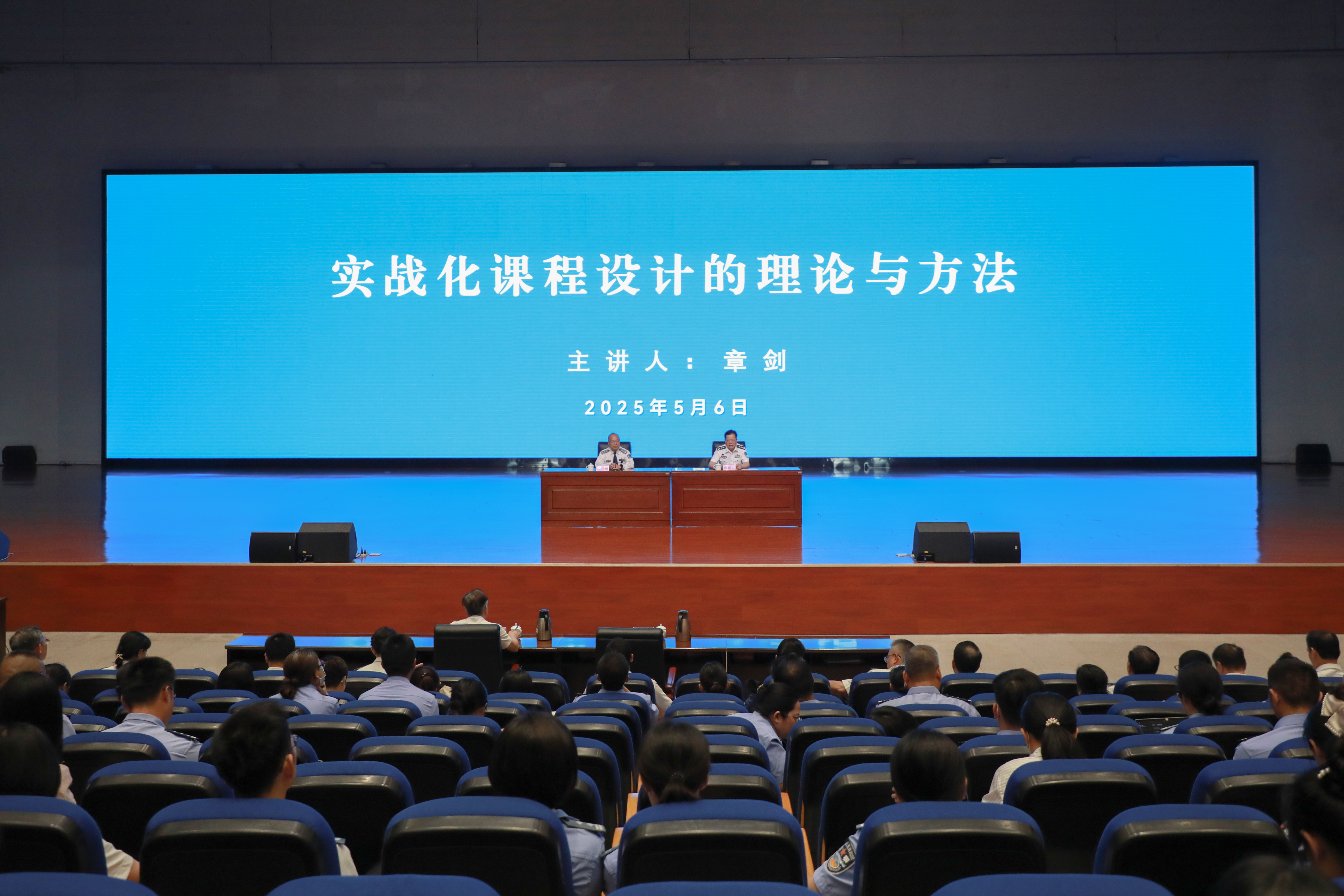 讲座紧紧围绕“实战化课程设计的理论与方法”这一主题,从实战化课程的定义、选题的技巧、教学方法的奥秘等方面展开深入系统的探讨。章剑教授以案例对比指出公安教育训练应向实战化转变;强调实战化课程五要素,提出 “小、实、专、新”选题原则;从案例选择、技战法萃取等方面为提升实战化教学质量提供方法路径。讲座紧密贴合公安教育实际,既具理论高度,又有实践指导意义,为学校实战化教学改革提供了有益指导。