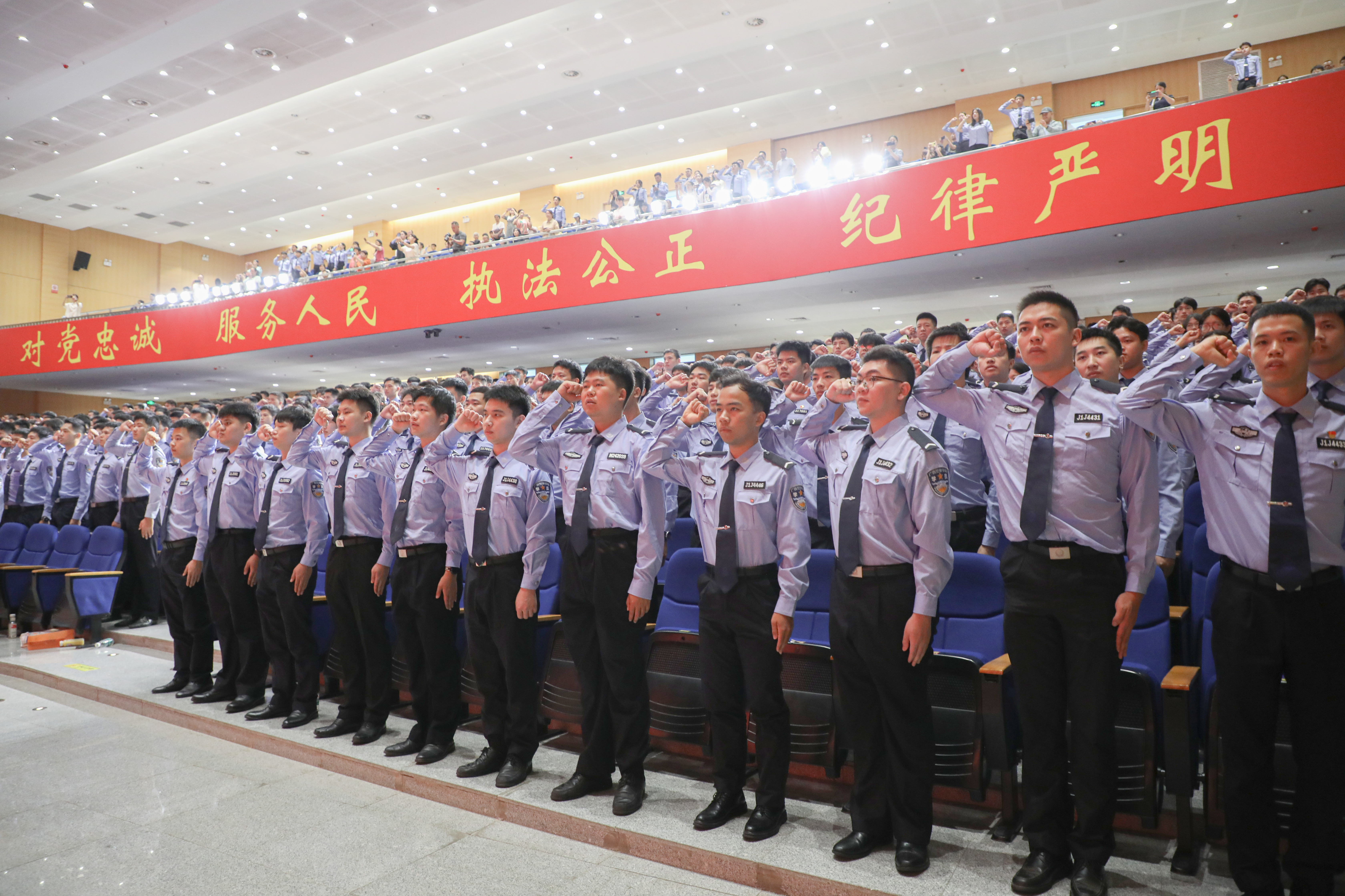 毕业生集体庄严宣誓,铿锵的誓言展现出警院学子理想坚定、奋发向上的精神风貌。