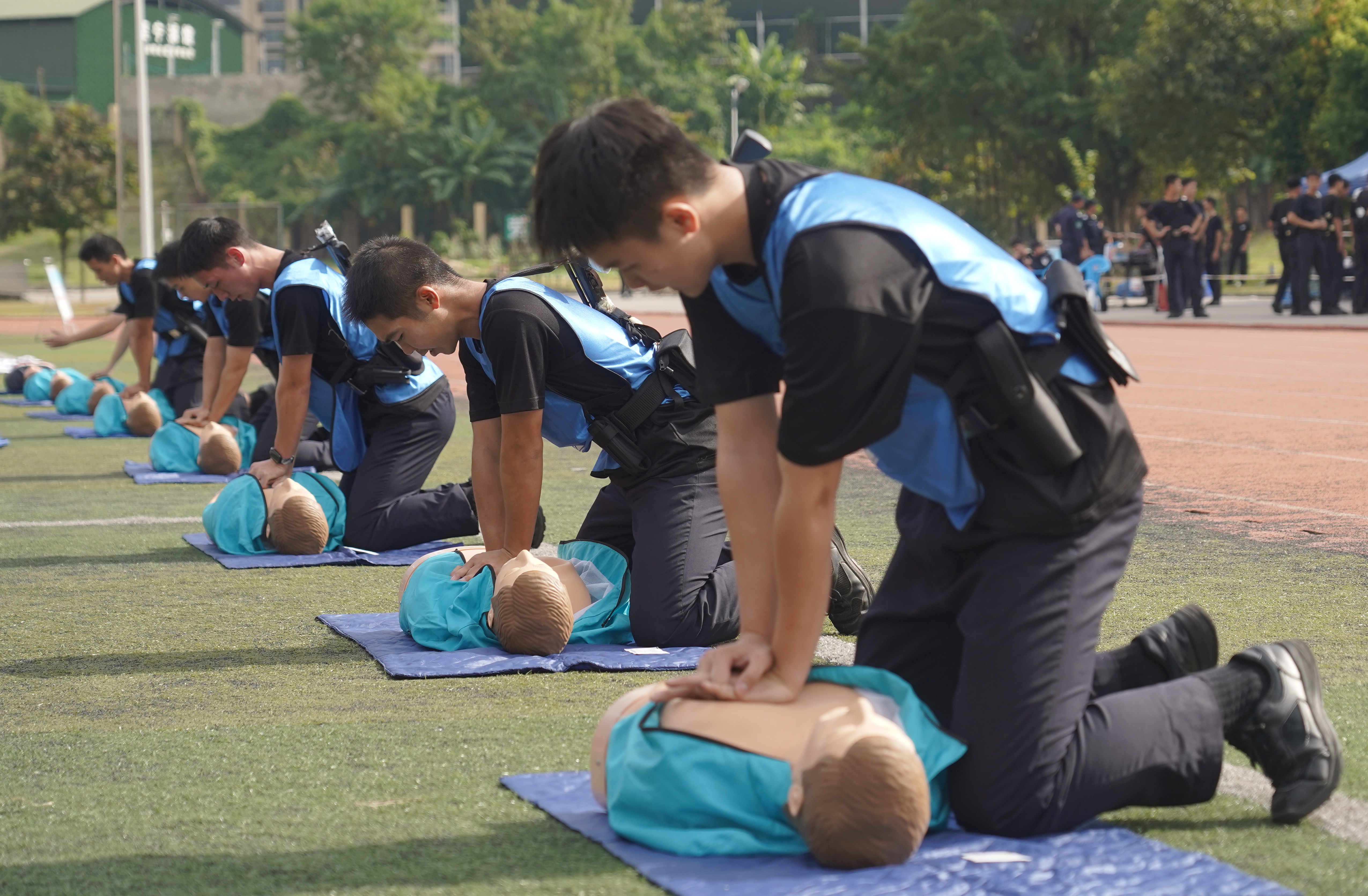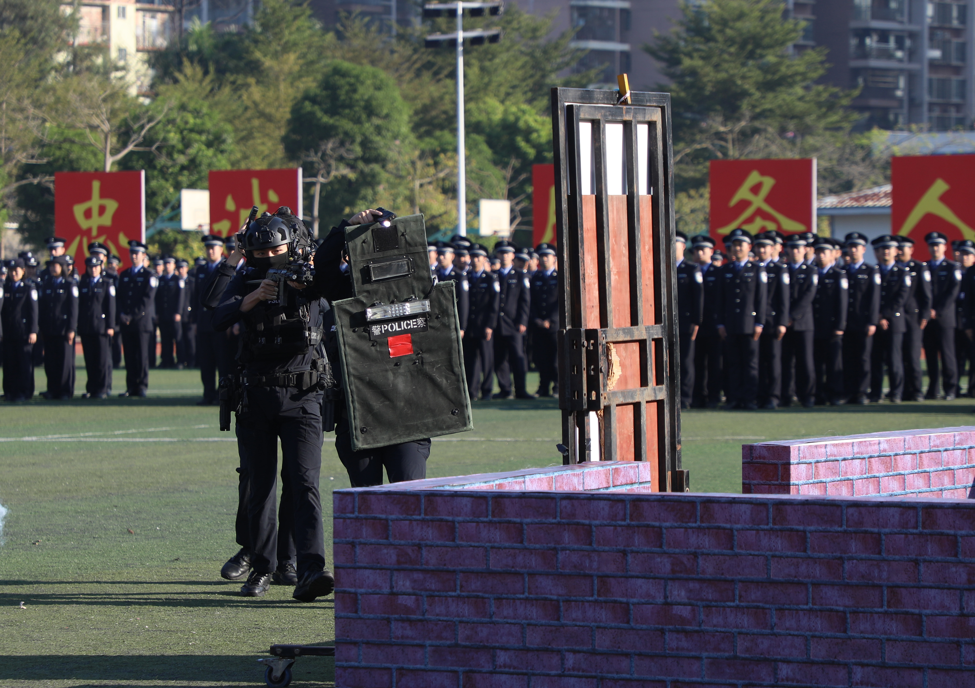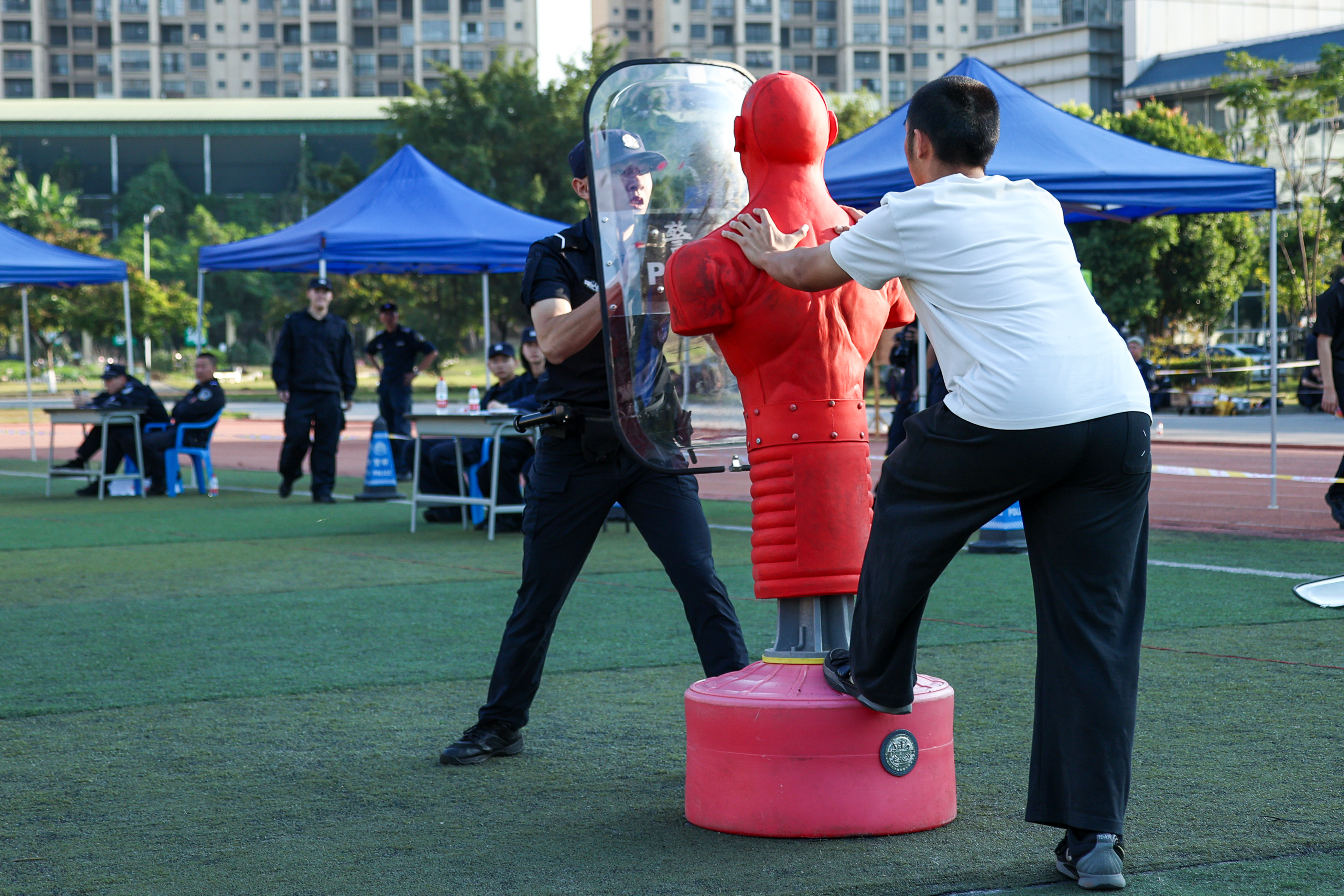 开赛仪式进行了徒手防卫控制技术、警械使用技术、战术基础动作、模拟警情综合演练等4个项目警务实战技能展示,同学们眼神坚定如炬、动作刚劲有力,每一环节均彰显日常训练的扎实功底与实战应用的快速反应能力。