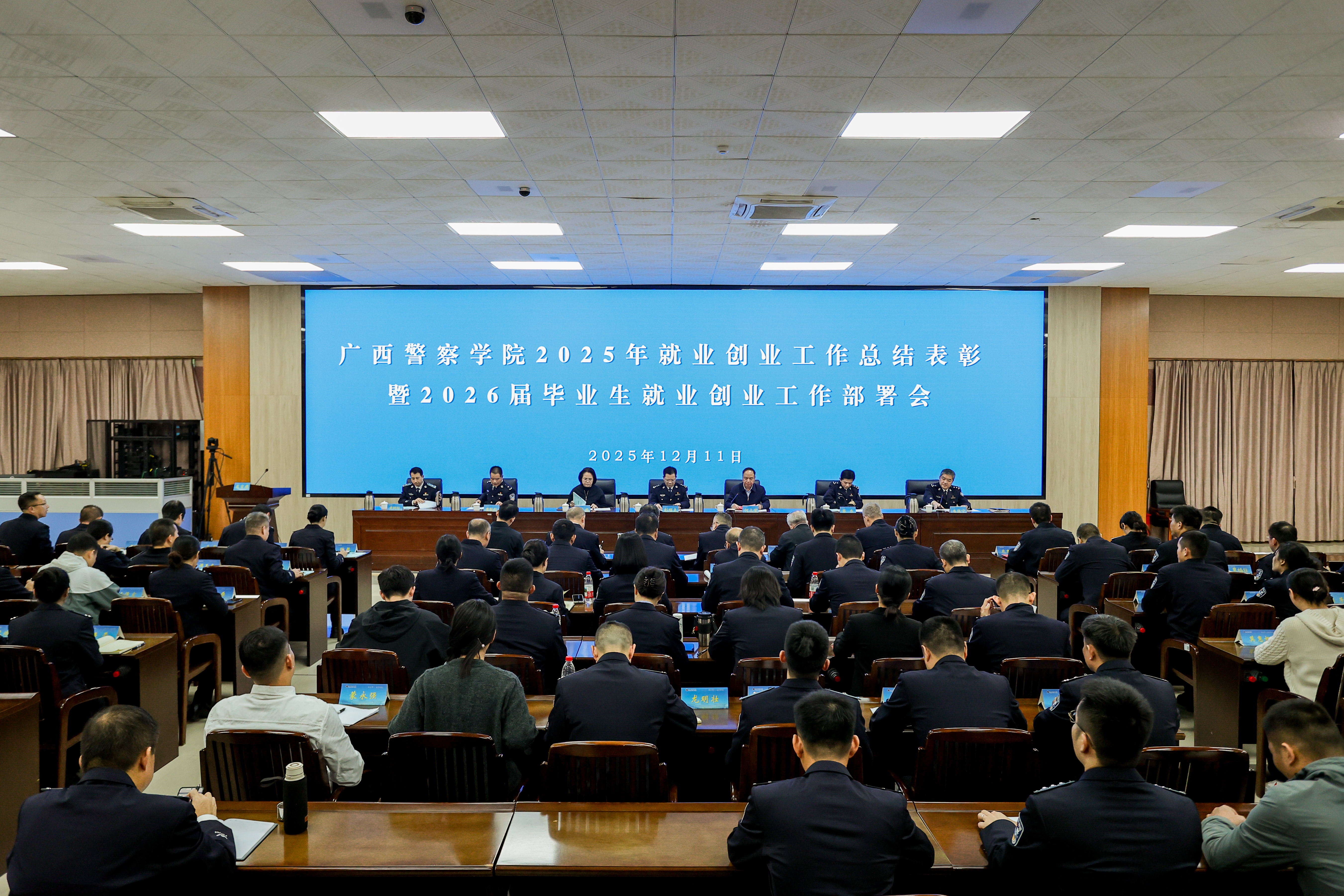为贯彻落实国家和自治区关于高校毕业生就业创业工作的部署要求,落实2026届全国普通高校毕业生就业创业工作会议精神,总结2025届毕业生就业工作成效,部署2026届毕业生就业创业工作,12月11日,学校在仙葫校区图书馆403多功能报告厅召开2025年就业工作总结表彰暨2026届毕业生就业创业工作部署会。学校党委书记彭顺克出席会议并讲话,校党委副书记、校长何立荣,校党委副书记唐春燕,自治区纪委监委驻学校纪检监察组组长、校党委委员、纪委书记黎东,校党委委员、副校长唐魁彪,副校长韦岗宁,副校长黄树标出席会议。会议由韦岗宁主持。