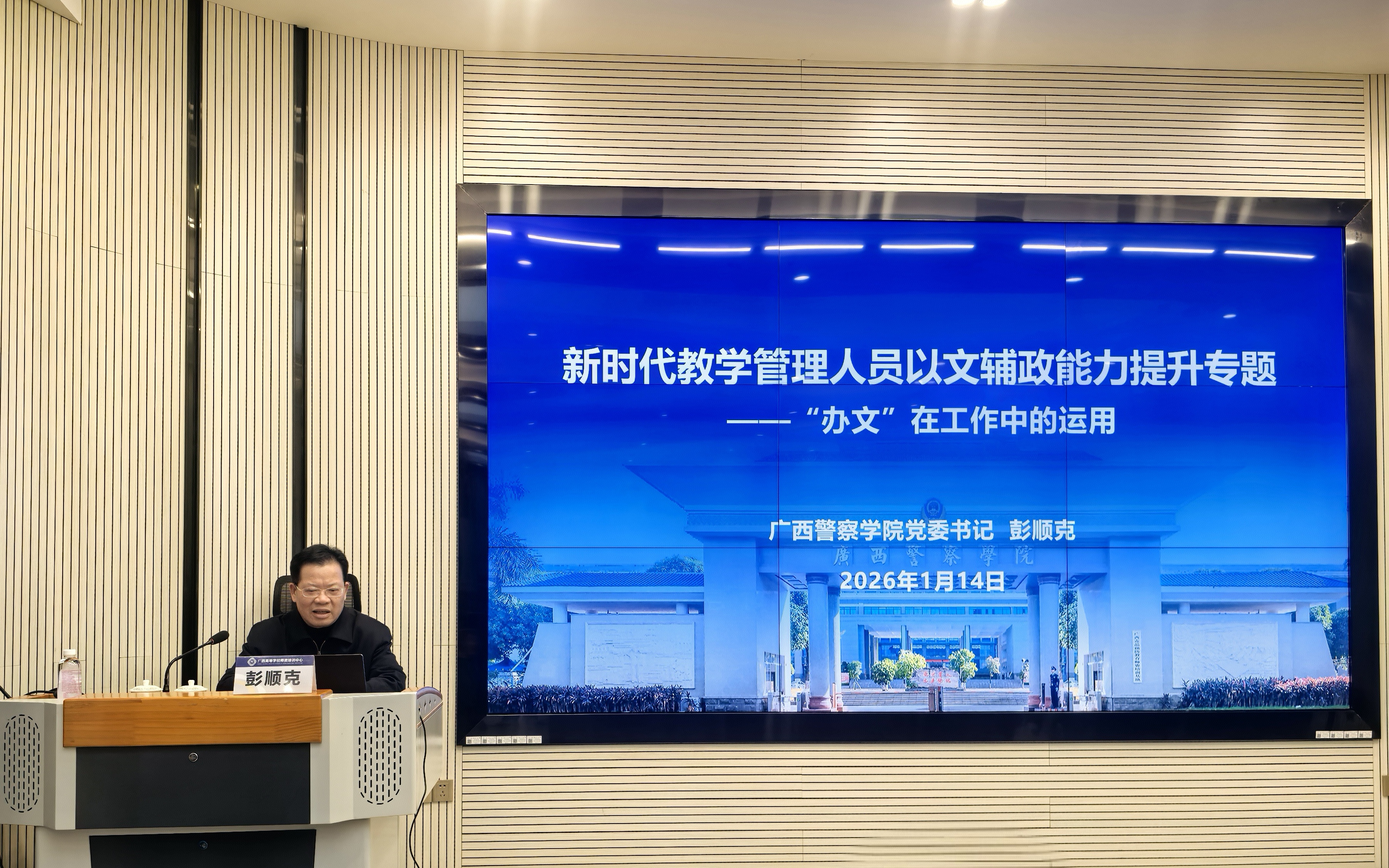开班仪式后,彭顺克以“新时代教学管理人员以文辅政能力提升——‘办文’在工作中的运用” 为题为全体学员授课。他紧密结合公安院校教学管理工作实际,通过典型案例,系统讲解了公文写作的规范要求、实用技巧以及关键环节的注意事项,为广大学员提升公文处理能力提供了精准指导。