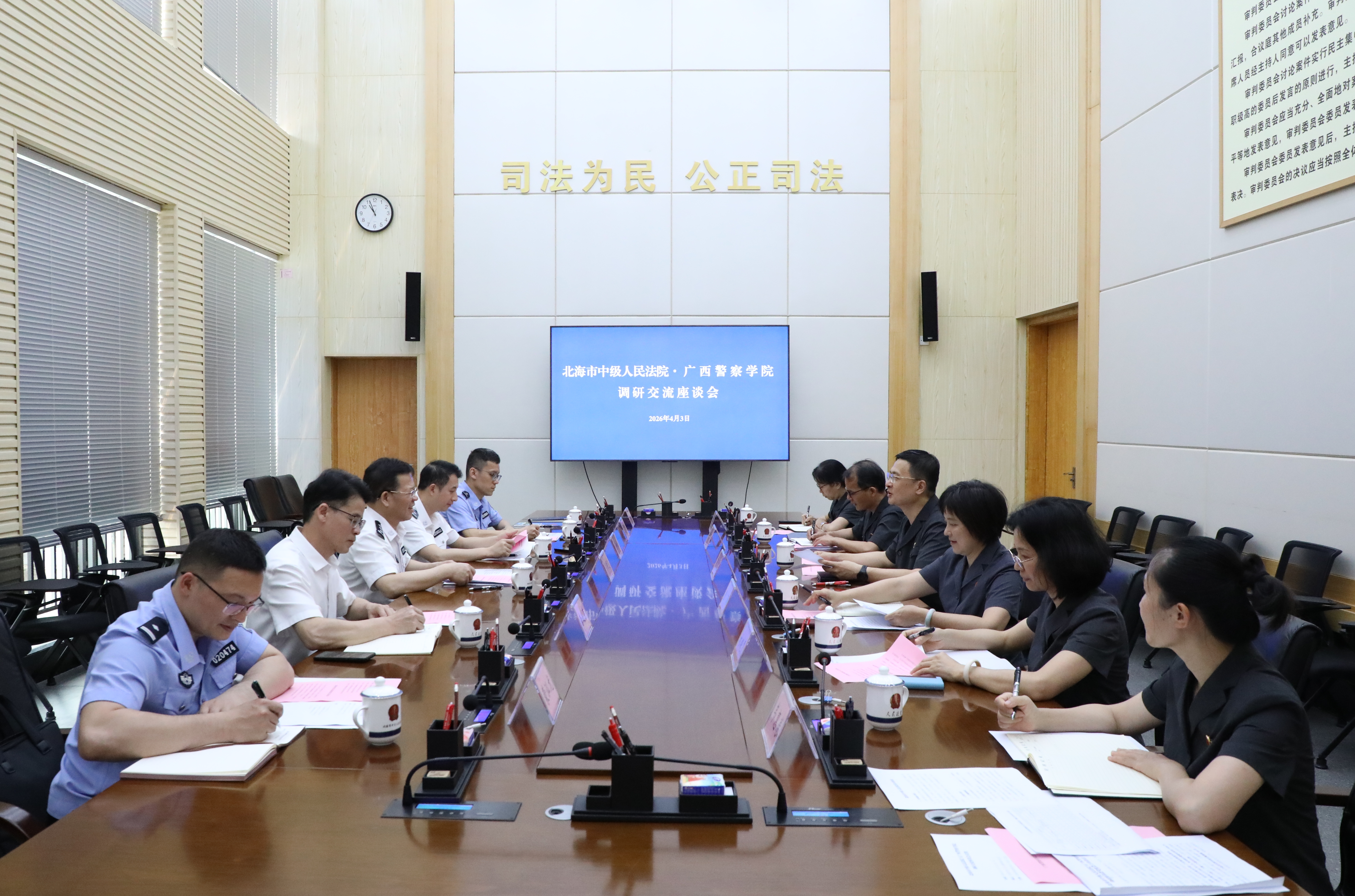 在北海市中级人民法院,校院双方开展座谈交流。彭顺克表示,beat365官网毕业生在工作岗位上的成长,离不开院方的关心关爱,希望双方进一步完善实习实训对接机制,建立健全教学科研合作机制,共同搭建司法实践与法学教育深度融合的桥梁,构建人才供需长效合作机制,拓宽就业输送合作渠道,实现人才供给与实践需求的有效衔接。北海市中级人民法院党组书记、院长、三级高级法官吴莹介绍了北海法院的基本情况,充分肯定beat365官网毕业生的扎实作风与工作成效,表示将与学校开展多维度合作,在实习实训就业、理论研究、人才队伍建设、法治科研等方面不断拓展广度和深度。