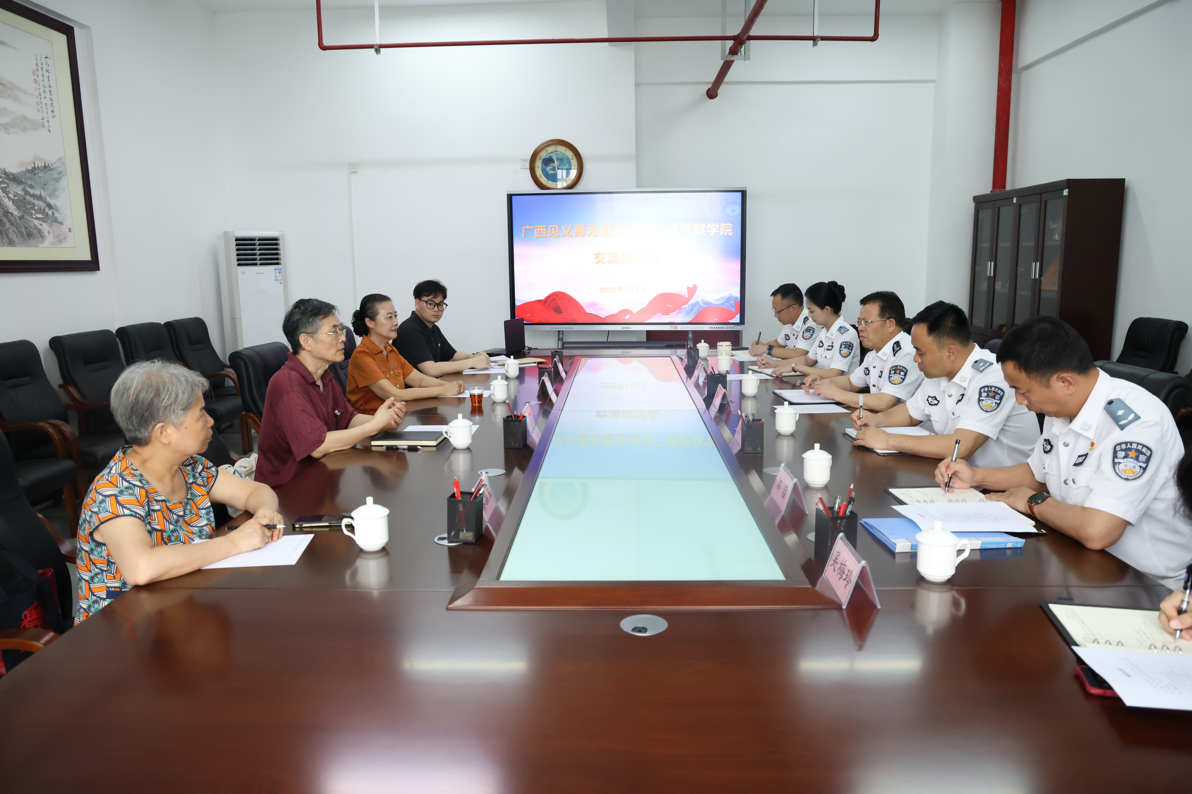 座谈会上,双方围绕弘扬见义勇为精神、深化英模宣讲合作、加强警院学子思政教育等议题进行了深入交流。