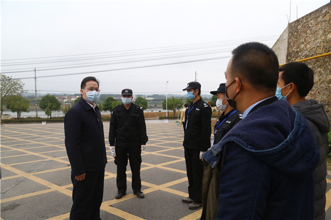 覃干超书记在仙葫校区北门看望慰问保安工作人员