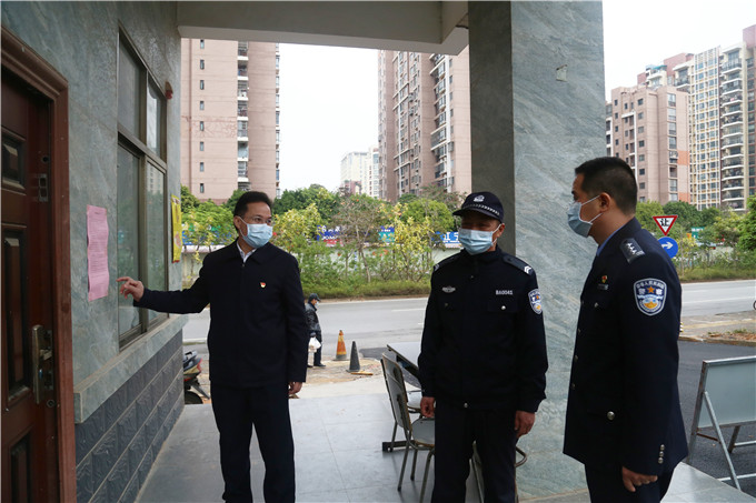 覃干超书记在仙葫教职工小区检查疫情防控工作