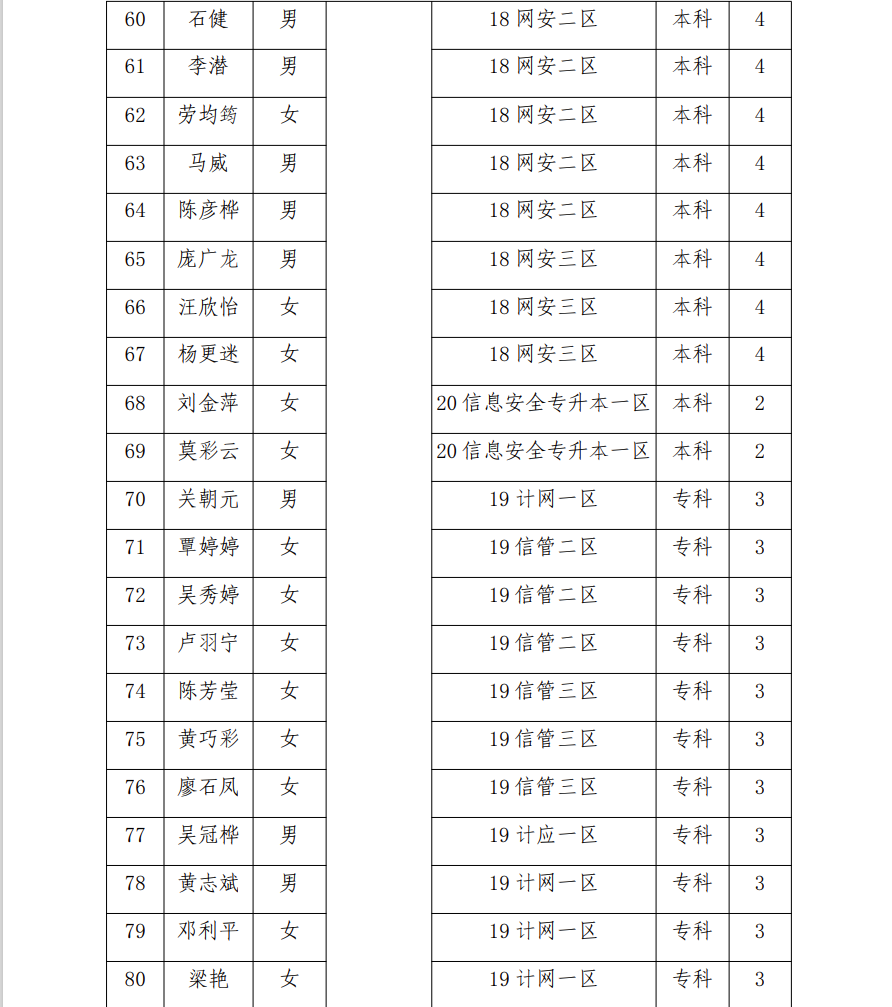 信息技术学院2022届校级优秀毕业生名单