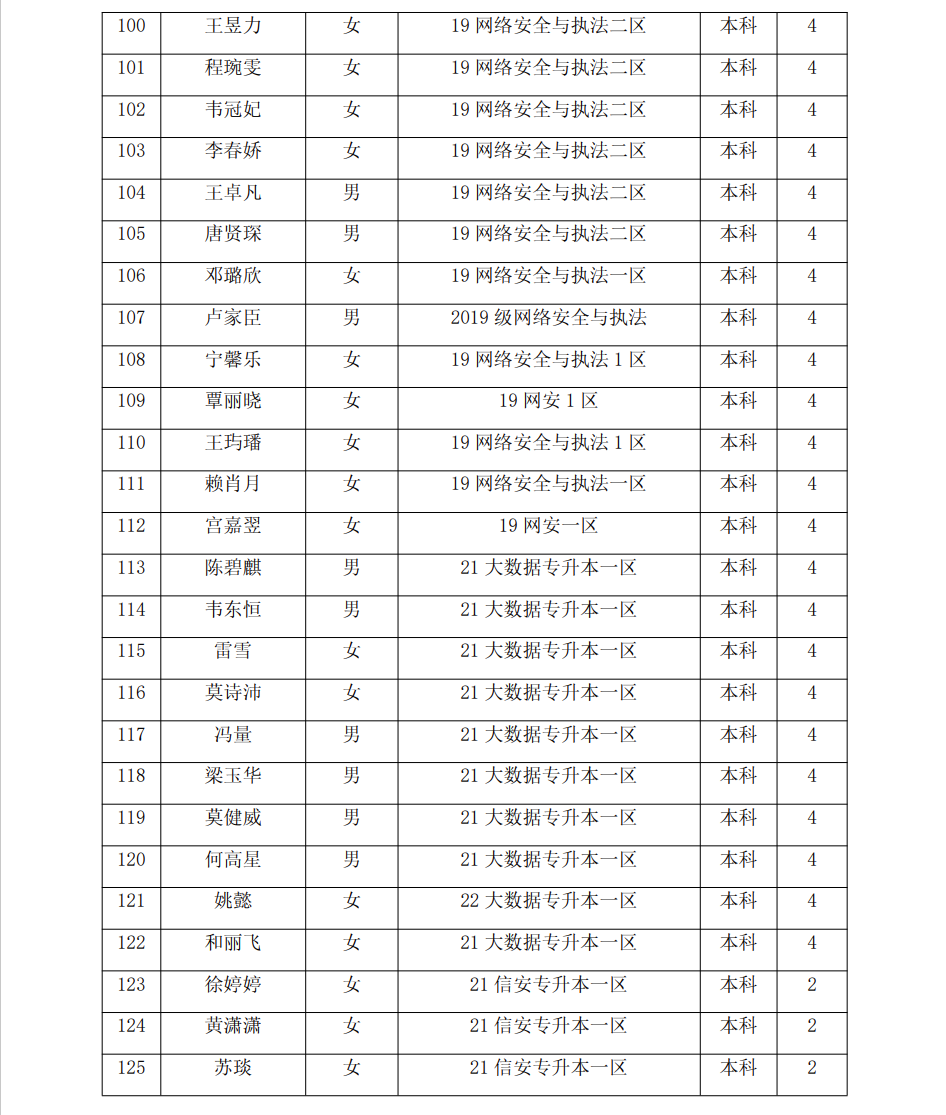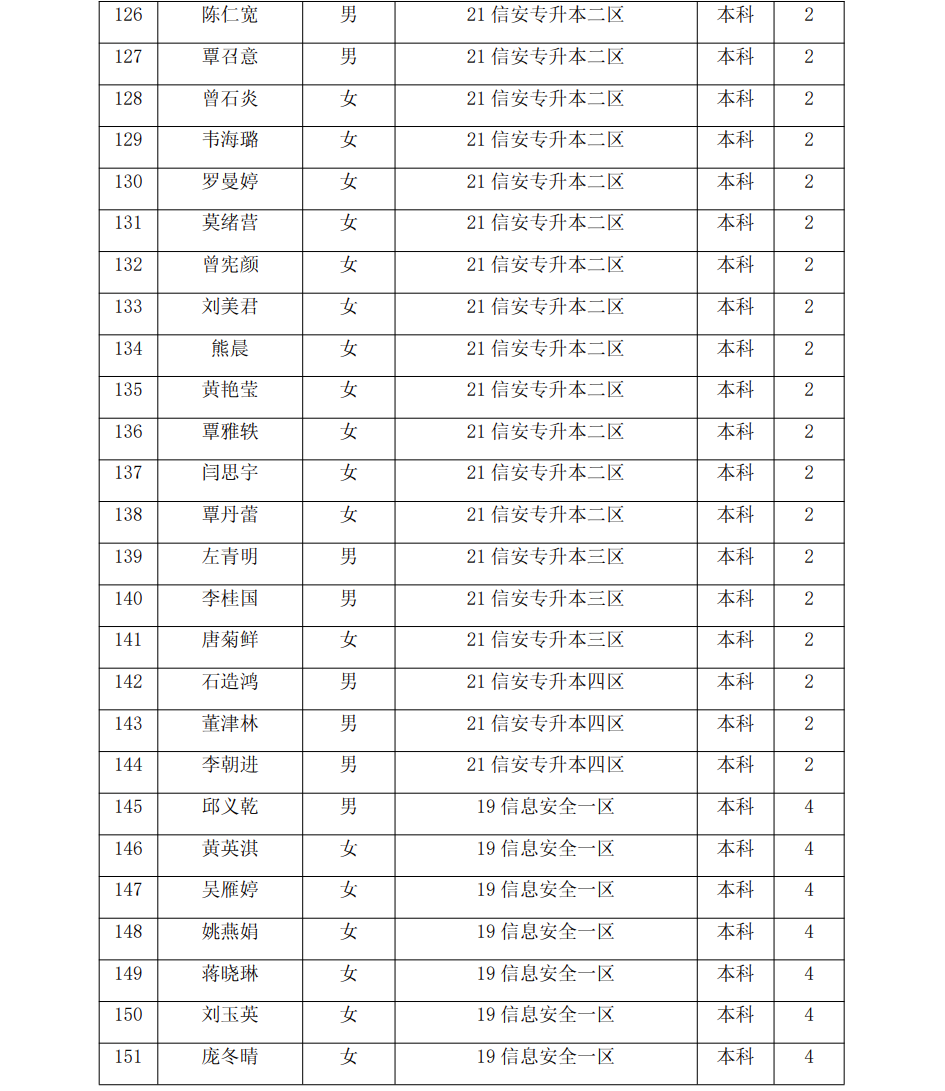 信息技术学院2023届校级优秀毕业生名单