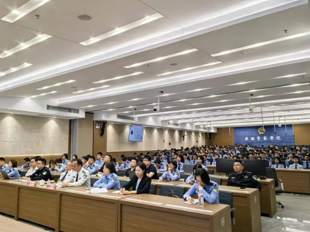 为深入贯彻落实“科技兴警”重要部署,营造浓厚的学术氛围,公安大数据现代产业学院于11月5日15时,在智慧公安研训基地举办智慧公安大讲堂讲座。本次讲座特别邀请了玉林市公安局防盗反劫联网监控中心政治委员封镭同志作为主讲嘉宾。讲座主题为《探索创新全面推进科技兴警战略 全力打造智慧公安信息化建设》。封镭同志以自己多年丰富的从警经历为线索,介绍了广西公安警务模式的演变。从他的分享中,不仅可以见证广西公安从传统警务到现代警务的转变,也能深刻感受到公安工作与时俱进的重要性。封镭同志还深入分析了当前公安信息化发展的机遇、挑战和问题,指出信息化建设不仅能够提高警务效率,还能够更好地服务于人民群众。最后,封镭同志结合自己在警察学院的学习经历鼓励同学们要珍惜当前学习机会,全身心投入到学习中,在努力追求知识和技能提升的同时也要培养自己作为一名警察的职业素养和责任感。