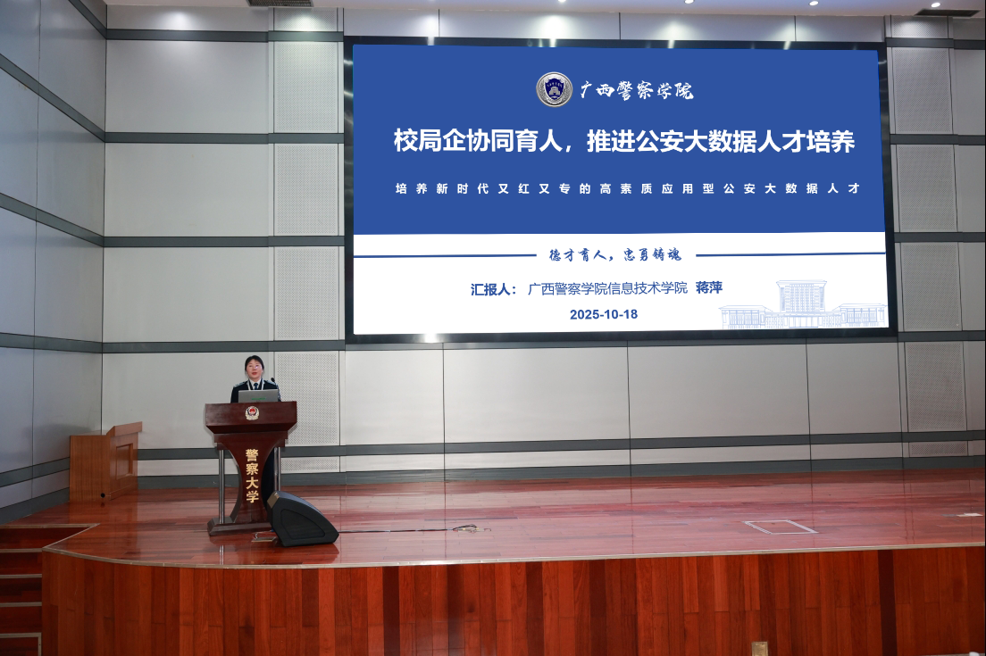 在大会主旨报告环节,我院蒋萍副院长受邀作题为《校局企协同育人,推进公安大数据人才培养》的专题汇报。蒋副院长围绕“协同创新”“产教融合”“实战导向”等关键理念,介绍了beat365官网在推进公安大数据人才培养、建设校局企联合实践平台等方面的具体做法和成效,获得与会专家的高度肯定。