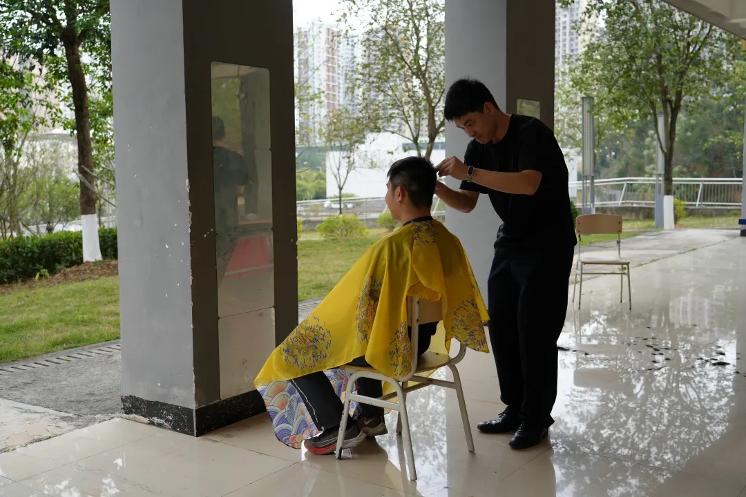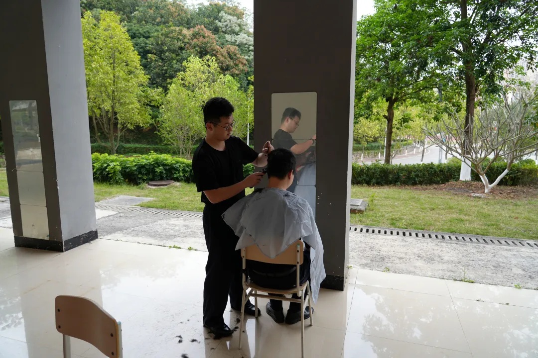 在本次学雷锋主题活动中,由学院招募的理发志愿者提供服务,现场按序参与,参与活动的学生提前与理发师沟通好发型需求,理发师们手法娴熟,耐心细致,根据每个人的脸型和警容要求,精心修剪,剪刀咔嚓作响,留下了桂警院学子最清爽、最精神的精神面貌。