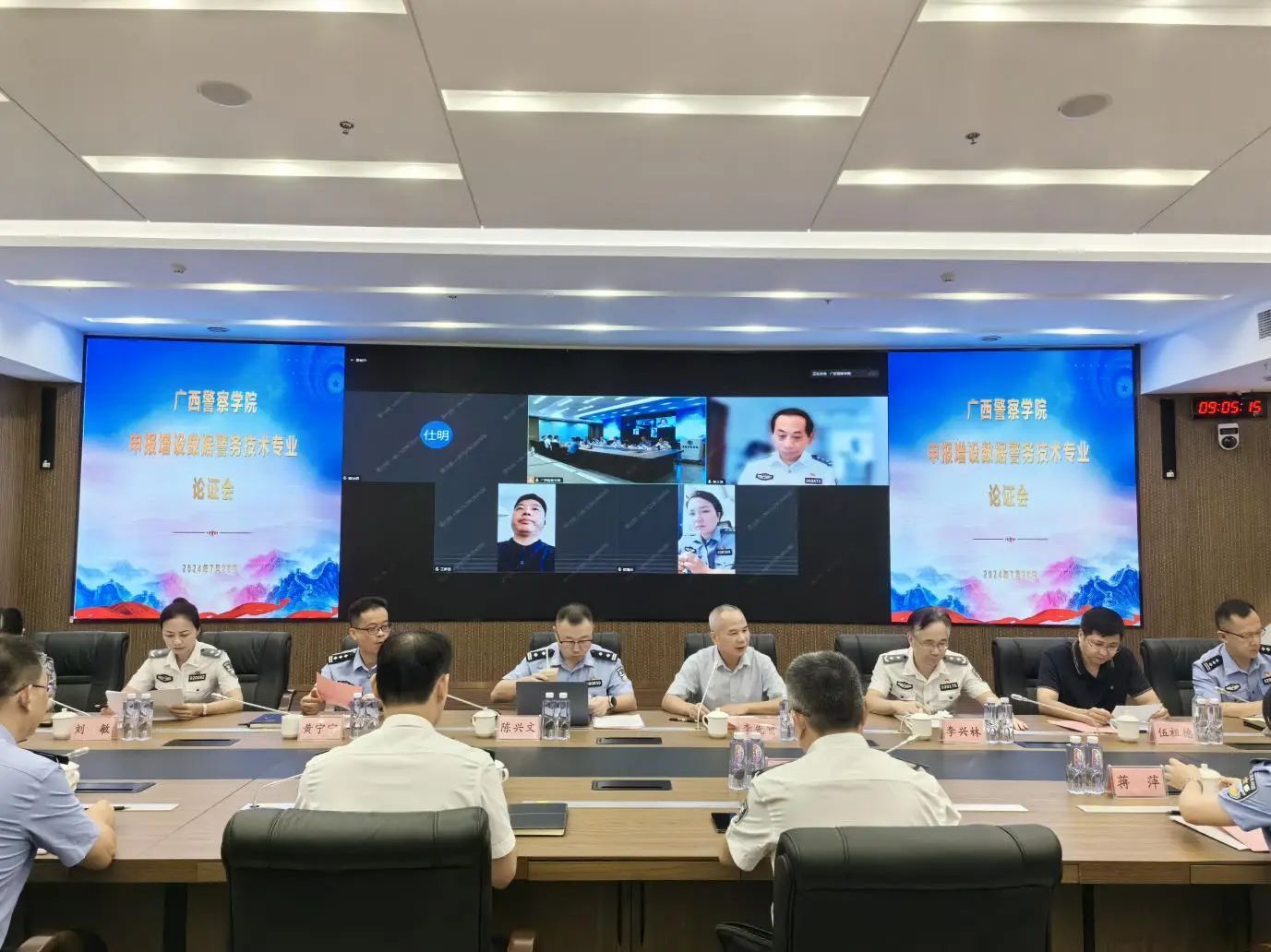 本次论证会特邀请了广西师范大学李先贤副校长、中国刑警学院秦玉海教授、南京警察学院信息技术学院院长王新猛教授、中国人民公安大学数据警务技术教研室主任颜靖华副教授、广西壮族自治区公安厅网安总队陈兴文副总队长、广西公安计算机通讯技术研究所伍祖德副所长、南宁市公安局网安支队黄宁宁副支队长及李兴林副校长等有关专家参加。会上,首先由我院副院长蒋萍教授汇报了新增数据警务技术专业的申报情况。随后专家依次从该专业申报必要性、师资队伍建设、人才培养方案、课程设置等方面给出指导意见并一致同意我院申报事宜。会后,我院将根据专家组意见修改完善相关材料后按流程报上级部门审批。