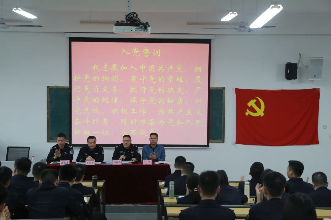 会议共有九项议程:第一项议程是支部委员会向大会报告中共党员出席会议的情况;第二项是入党申请人发言汇报;第三项是入党介绍人介绍申请人的情况并对其能否入党表明意见;第四项是支部委员会汇报入党申请人的培养考察情况,宣读政审情况;第五项是与会的党员发表意见;第六项是与会有表决权的正式党员进行票决;第七项是支委会根据票数统计,宣读大会决议;第八项是韦子焱等48名同志集体宣读入党誓词;第九项是治安学院党总支书记李林青同志总结讲话。