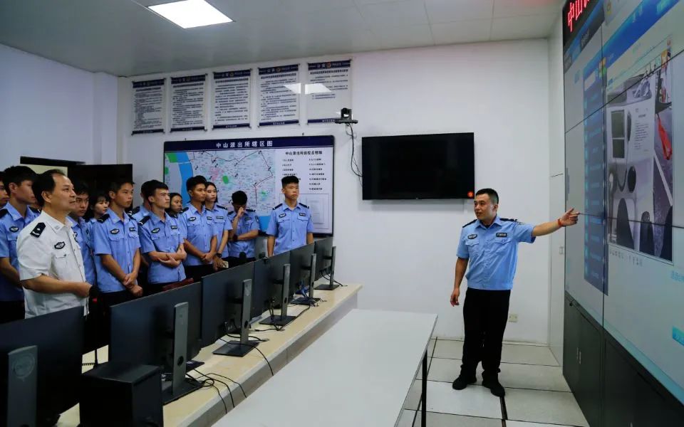 随后,讲解员为了让同学们更深入的走进中山派出所,先后带领同学们参观了中山派出所党员学习室、党建活动室、综合指挥调度室、叶叔调解室等。