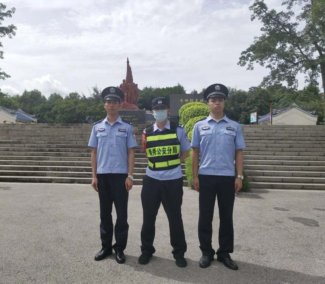 滨湖派出所增援学警陈颖、庞智鑫协同值班民警在南湖公园烈士纪念馆巡逻。