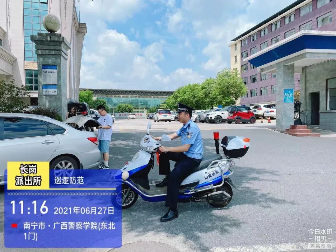 滨湖所增援学警陈颖、廖世辉协同民警前往南宁市沛鸿民族中学进行巡逻检查,确保学校招新工作顺利。