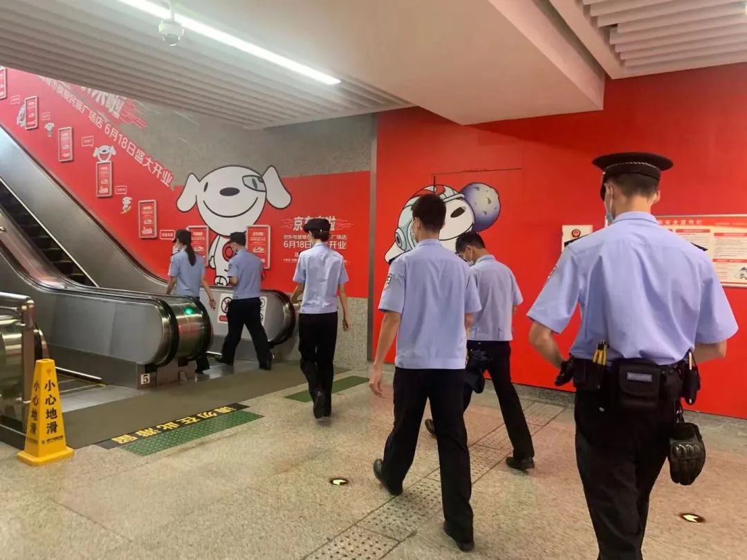 星湖派出所5名增援学警协同值班民警前往地铁站等人群密集场所开展安全隐患排查工作。